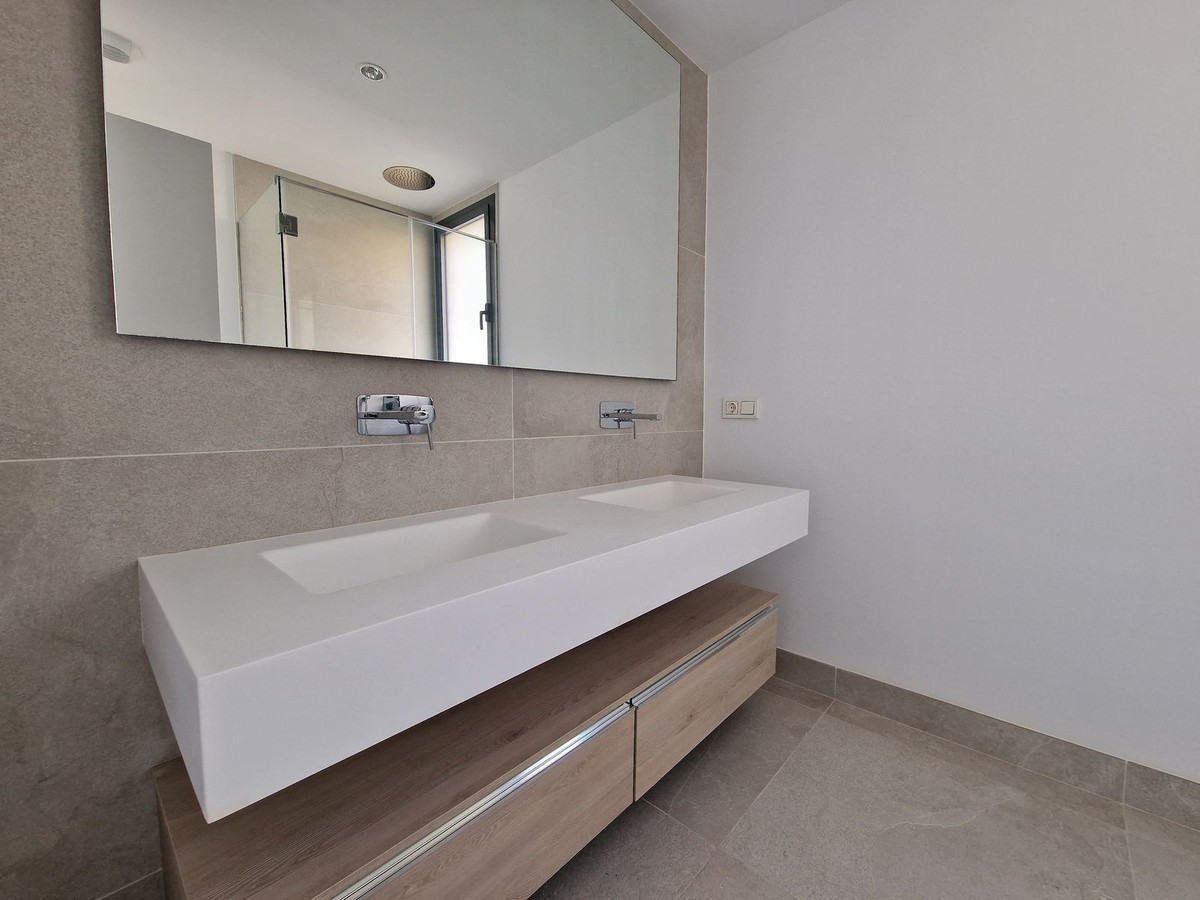 Urb. Artola Homes!!! Discover the charm of this 2-bedroom luxury apartment nestled in the coveted enclave of Artola, just a delightful 20-minute stroll from the beach. The main allure of this residence lies in its prime location in a luxury complex boasting a gym and indoor pool. As you step inside, a discreet laundry room to your right, provides ample shelf-space for linen and the washing machine and tumble dryer. The 2 bedrooms are all conveniently located ahead of you (one of which is ensuite), and the kitchen/dining area is immediately to your left, leading out to the spacious terrace. The apartment is equipped with an energy-efficient heat pump system that bestows hot or cold air according to your needs. Both bathrooms also have underfloor-heating. Easy access to the rooftop terrace, where you can enjoy the sun throughout the year. Parking is a breeze with not one but two dedicated spaces – an indoor space for your vehicle and an outdoor convenience for guests. This flat is nestled within a secure gated complex, granting you exclusive access to a cutting-edge gym for your fitness pursuits. Step into the outdoors to find a spacious pool area, perfect for unwinding in the Mediterranean sun. For those cooler days, retreat to the heated indoor pool.