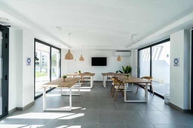 Rez de chaussée, cuisine équipée, Parking: Grand garage, piscine communautaire, Jardin: Communauté, Orientation: Sud-est