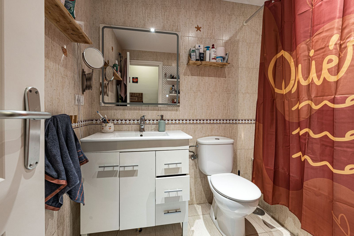 The apartment features a full bathroom and an additional guest toilet, ensuring everyday comfort. The opened kitchen flows into a bright and spacious living room, with direct access to a large private patio, perfect for relaxing outdoors.