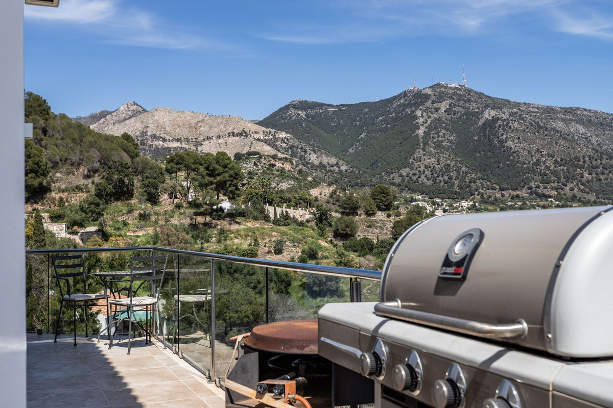 Depuis l'étage, vous profiterez d'une vue imprenable sur Mijas : un vaste panorama sur la mer Méditerranée et les montagnes environnantes. Vous pourrez profiter du soleil du matin au soir depuis l'une des nombreuses terrasses ou espaces extérieurs au bord de la piscine privée.
