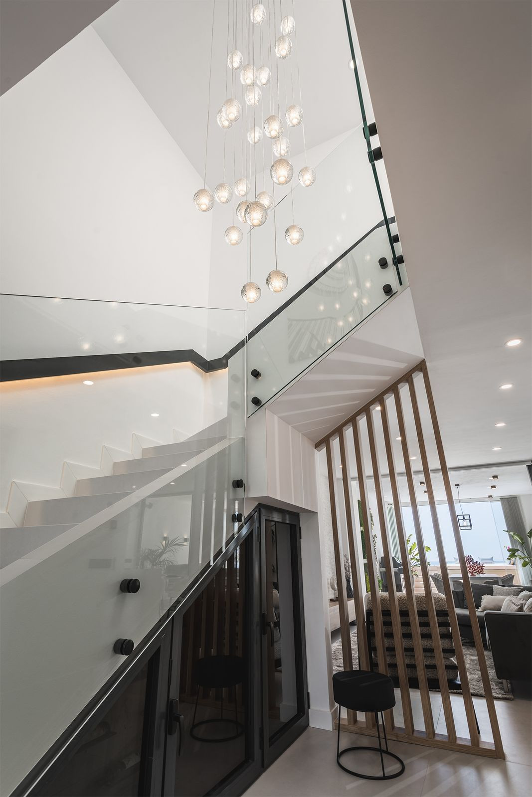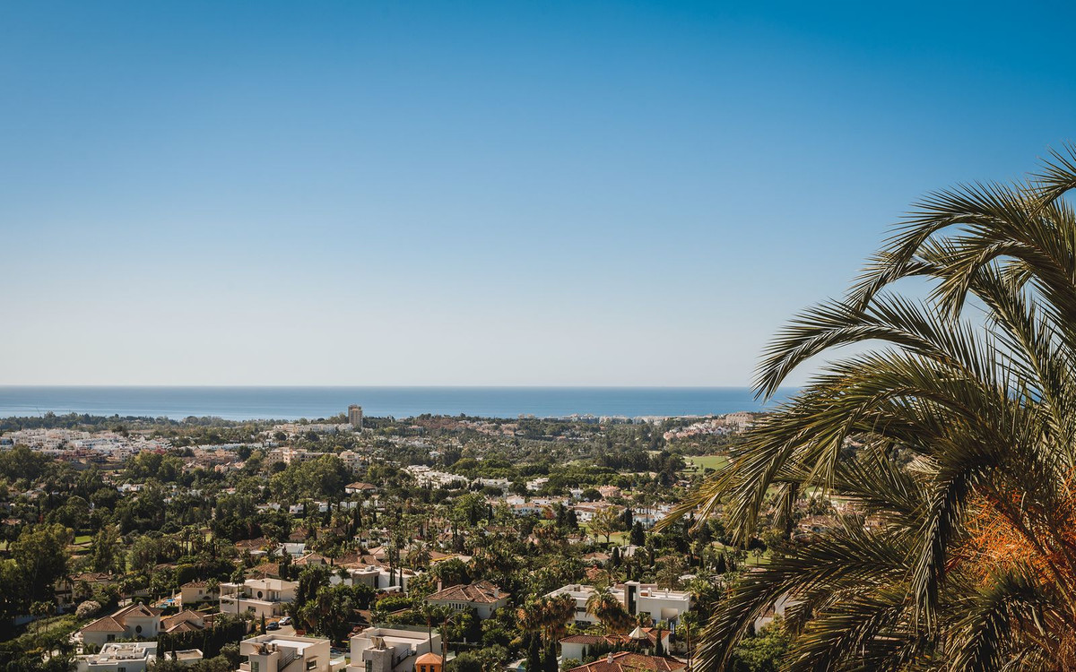 Spectaculaire penthouse en duplex entièrement rénové avec vue panoramique imprenable sur la mer, les montagnes et la vallée du golf à Los Belvederes, une résidence fermée réputée de La Cerquilla, Nueva Andalucia, avec sécurité 24h/24, jardins communs arborés, piscine, 2 courts de tennis (actuellement en discussion pour convertir l'un d'eux en 2 courts de paddle) et une salle de sport avec sauna. La propriété occupe tout le dernier étage de l'immeuble et comprend une impressionnante entrée avec vestiaire et petite cave à vin, menant au salon/salle à manger avec vue panoramique sur la mer et accès à une terrasse couverte menant à une terrasse découverte avec bassin profond/jacuzzi ; une cuisine ouverte avec appareils électroménagers Neff haut de gamme ; et une chambre d'amis avec salle de bain attenante et dressing. À l'étage : une chambre principale double avec salle de bain attenante, cheminée, dressing et accès à une terrasse découverte avec stores électriques, bénéficiant des meilleures vues ; une chambre d'amis avec salle de bain attenante ; et une buanderie. Les autres caractéristiques comprennent : la technologie aérothermique Daikin ; Chauffage au sol (eau chaude) dans toute la maison ; système audio Sono dans toute la maison ; climatisation réversible avec régulateurs de zone. La propriété comprend une place de parking et