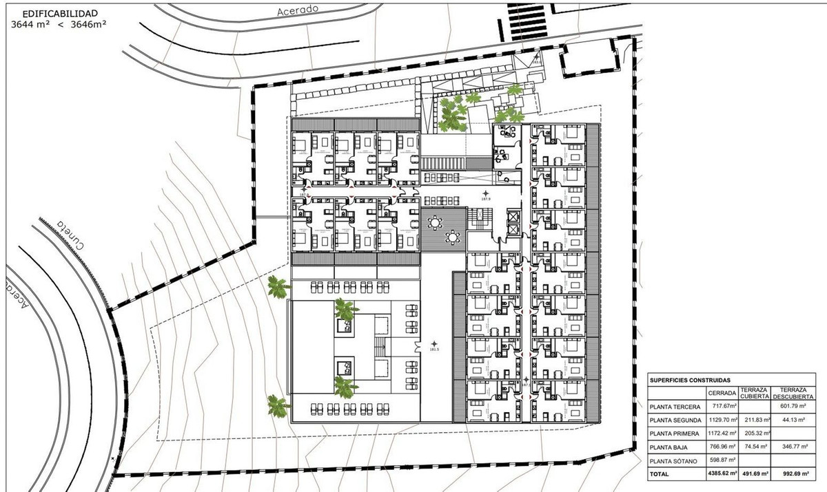 Il s'agit d'un terrain destiné à un usage d'équipement/commercial, d'une superficie totale de m² et de 3 650 m² de surface constructible, avec un projet viable pour la construction de jusqu'à 51 appartements touristiques.