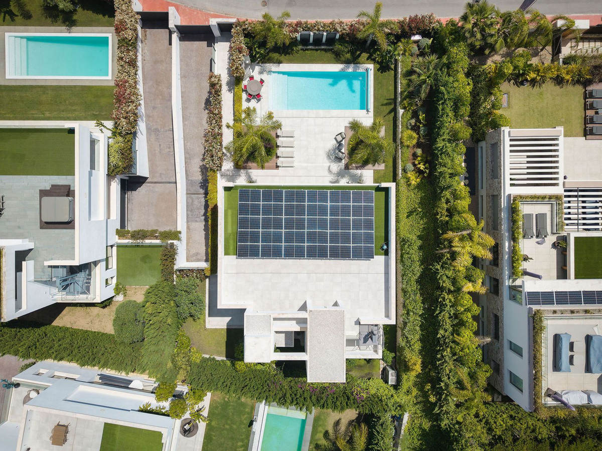 Bienvenue dans cette maison moderne et de très bonne construction située dans le quartier de Nueva Andalucia. Dès l'entrée, vous découvrirez une grande cuisine ouverte donnant sur la salle à manger et le salon. De là, vous accéderez à la grande terrasse couverte et à la piscine, dotée d'un grand espace pour bronzer et d'une douche extérieure. Au rez-de-chaussée, vous trouverez une suite parentale actuellement utilisée comme bureau. Au premier étage, vous trouverez trois suites parentales, toutes avec accès à une terrasse couverte. De là, un escalier mène au solarium équipé de panneaux solaires, tout en laissant suffisamment d'espace pour créer un espace de divertissement. Au sous-sol, vous trouverez une buanderie, des toilettes invités, une suite parentale, une grande pièce pouvant servir de salle de cinéma, etc., et enfin un grand garage pouvant accueillir jusqu'à quatre voitures. Tous les étages sont accessibles par escalier ou ascenseur. La technologie de la maison est moderne avec un chauffage au sol à eau alimenté par un système aérothermique, la climatisation est assurée par le système Airzone, les filtres à eau et les panneaux solaires rendent cette maison très efficace pour y vivre. Une maison dans une position très centrale en fait une maison de vie parfaite toute l'année ou une maison de vacances avec l'avantage supplémentaire d'être une propriété locative attrayante en raison de sa taille et de son emplacement.