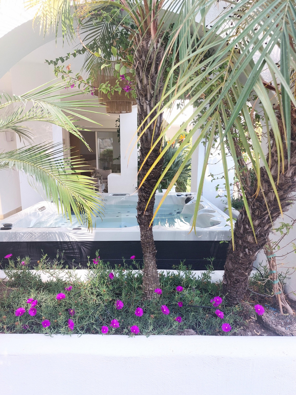 La propriété offre un espace spacieux de 245 m² avec deux chambres avec salle de bains privative, un lumineux séjour/salle à manger ouvert et une cuisine moderne entièrement équipée. De grandes portes coulissantes ouvrent sur une généreuse terrasse privée avec jacuzzi et accès direct à des jardins tropicaux luxuriants, créant ainsi un cadre idéal pour recevoir ou profiter du soleil toute l'année.