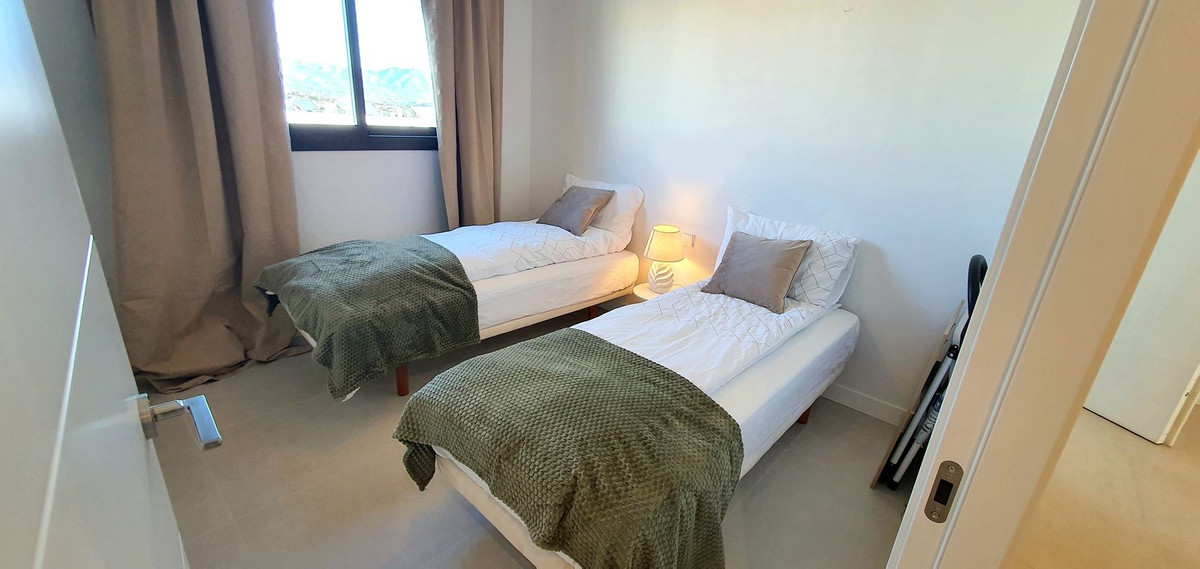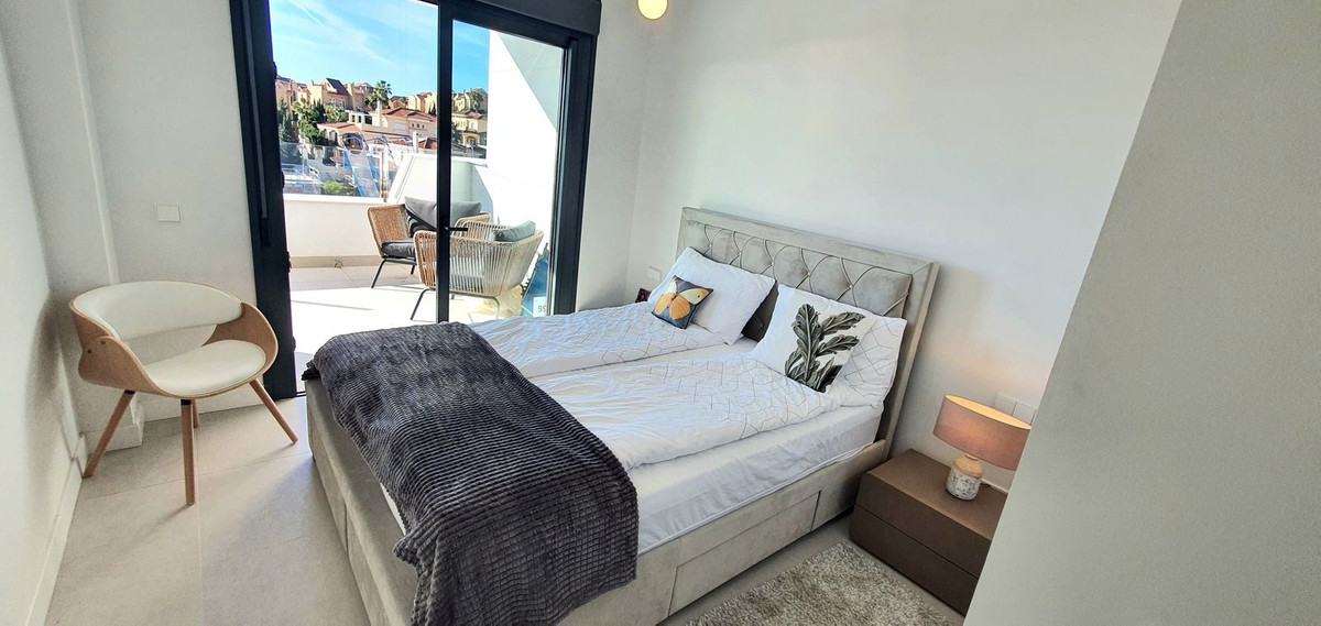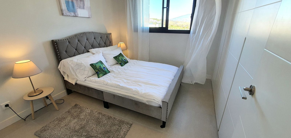 La chambre principale bénéficie également d'une vue sur la mer, d'un grand dressing et d'une élégante salle de bains attenante. Deux autres chambres doubles lumineuses et spacieuses disposent de placards intégrés et offrent une vue sur la piscine, les collines environnantes et le golf. Une salle de bains d'invités avec baignoire/douche complète l'hébergement.