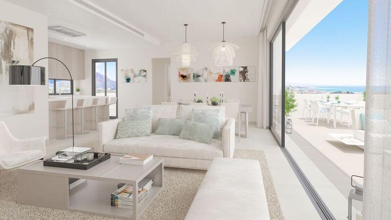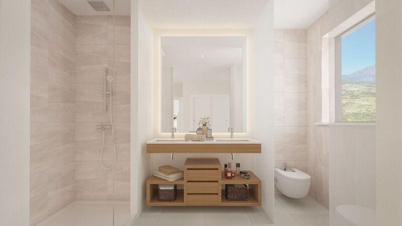 Grandes salles à manger avec cuisines intégrées, entièrement équipées d'appareils électroménagers Siemens (ou similaires), avec meubles et hotte encastrée, réfrigérateur américain dans les penthouses, deux terrasses et vue sur la Sierra de Casares et Estepona. Chambres principales avec salles de bains attenantes, dressings, placards avec éclairage LED et terrasse. Salles de bains avec douche à effet pluie, WC suspendus, réservoir d'eau caché et bain à remous dans les penthouses.