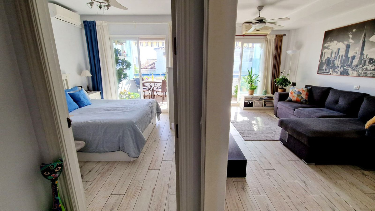 Beautifully renovated one-bedroom apartment for sale in lower Los Pacos, within walking distance to shops, restaurants, and public transport. This bright and sunny home features a spacious terrace with glass curtains and lovely sea views — perfect for year-round enjoyment.