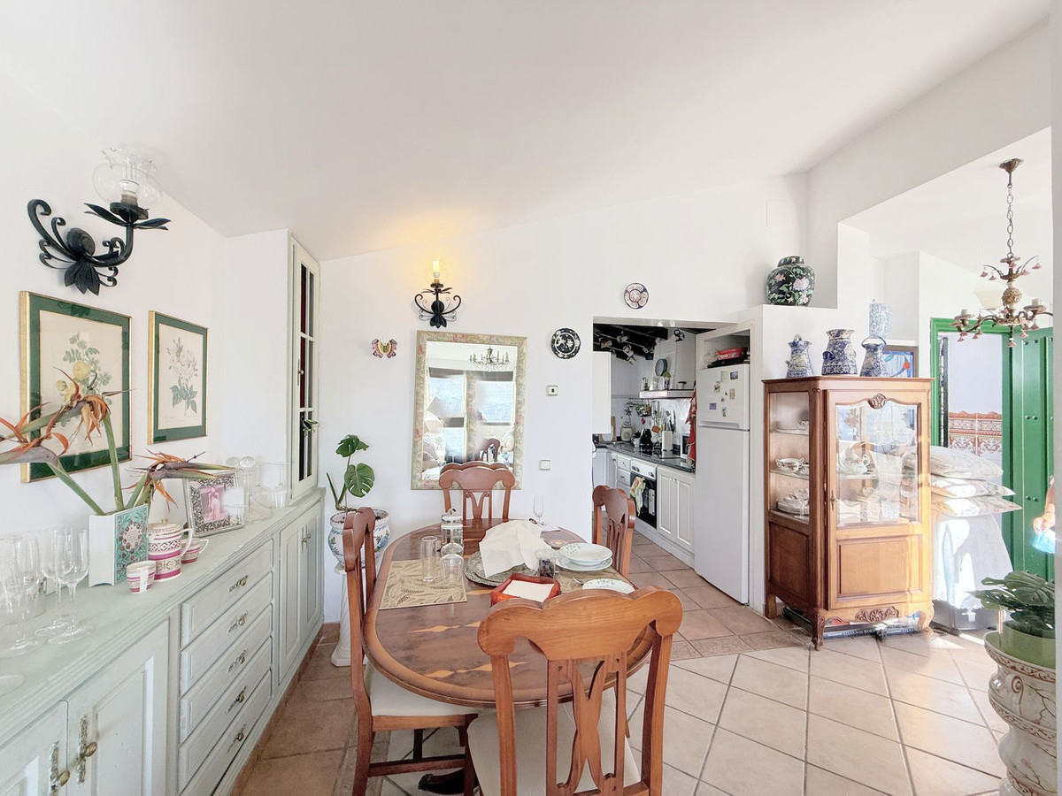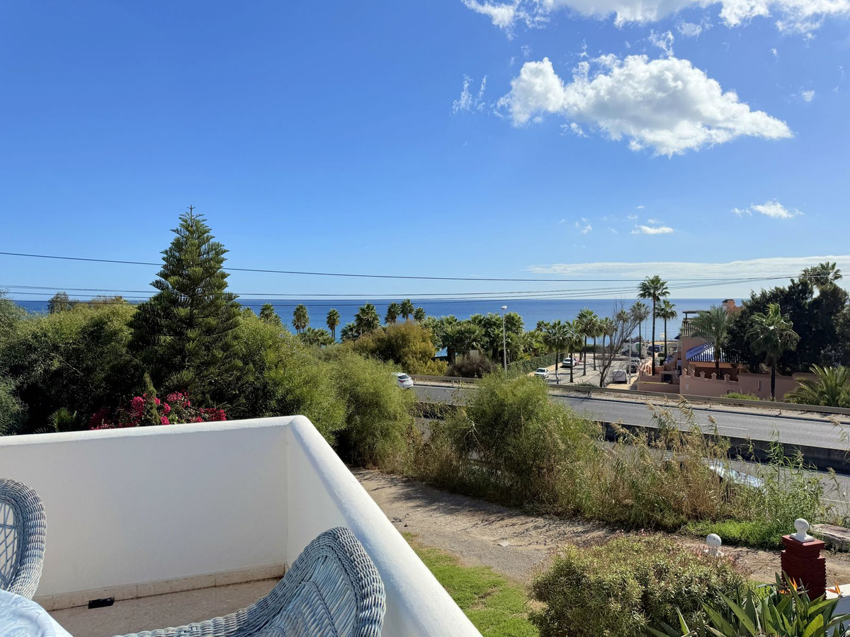 La propriété est répartie sur deux niveaux. Dès l'entrée, un charmant patio vous accueille et mène au rez-de-chaussée, qui comprend un salon lumineux, une cuisine indépendante et une terrasse offrant une agréable vue sur la mer – idéale pour se détendre et profiter du calme environnant.