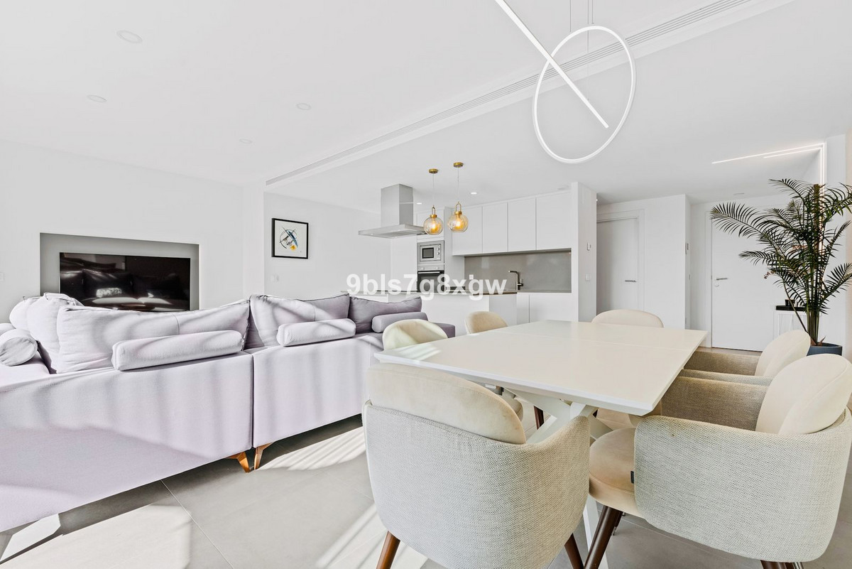 Cet appartement se distingue par sa luminosité et son agencement fluide. De grandes baies vitrées créent une transition harmonieuse entre l'intérieur et l'extérieur. La cuisine entièrement équipée (avec buanderie séparée) s'ouvre sur un vaste séjour/salle à manger, donnant sur une grande terrasse privative de 31 m² exposée sud-ouest, partiellement couverte : l'endroit idéal pour dîner en plein air, se détendre avec un livre ou simplement admirer la vue panoramique sur la mer, Gibraltar et le zoo de Selwo. À la tombée de la nuit, après le coucher du soleil, le panorama devient véritablement magique.