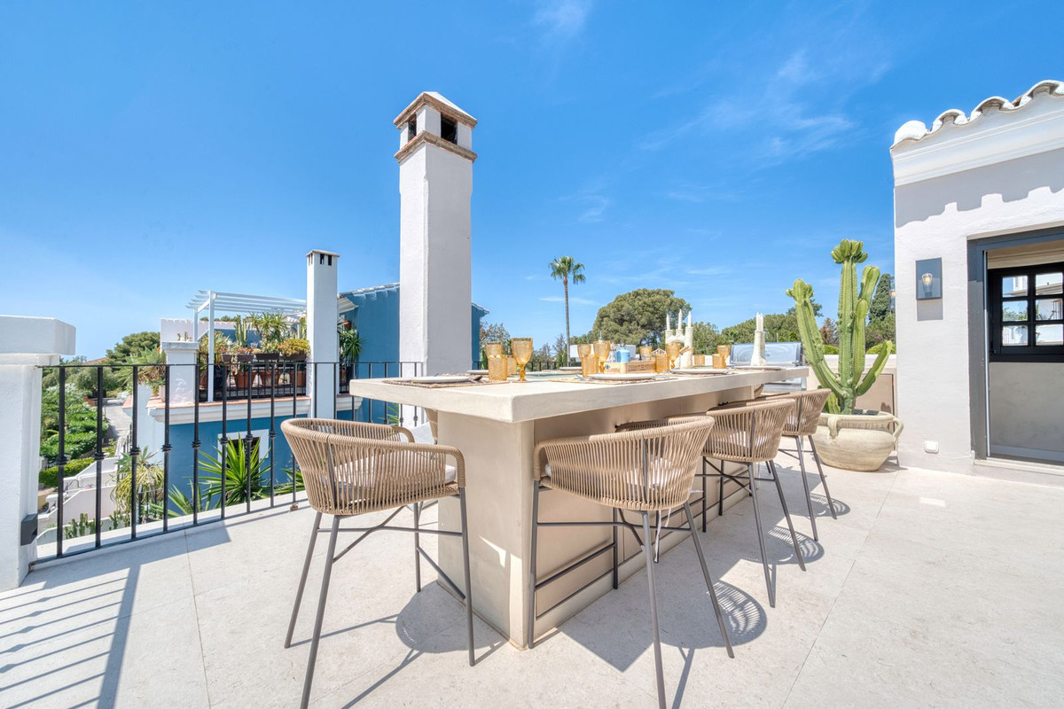 La terrasse sur le toit est tout simplement époustouflante, offrant une vue panoramique imprenable qui s'étend de La Concha aux toits du Puente Romano, en passant par la mer Méditerranée, et même Gibraltar et l'Afrique du Nord par temps clair. Conçue pour être habitée toute l'année, elle comprend un bassin chauffé, un espace barbecue et repas, ainsi qu'un salon ombragé pour se détendre, incarnant à merveille le style de vie marbellien, entre intérieur et extérieur. La propriété est proposée non meublée, mais le vendeur acceptera une offre incluant le mobilier dans la vente.