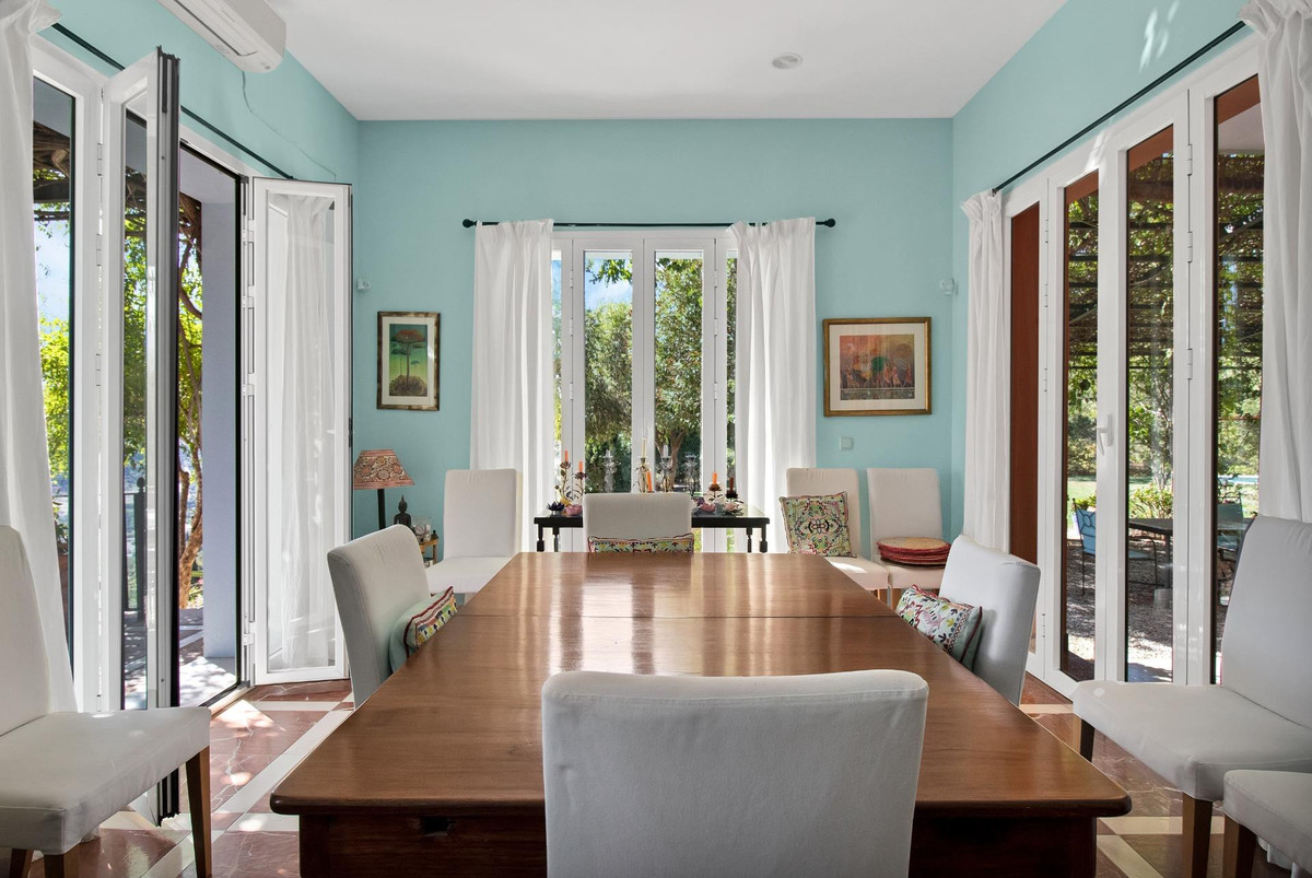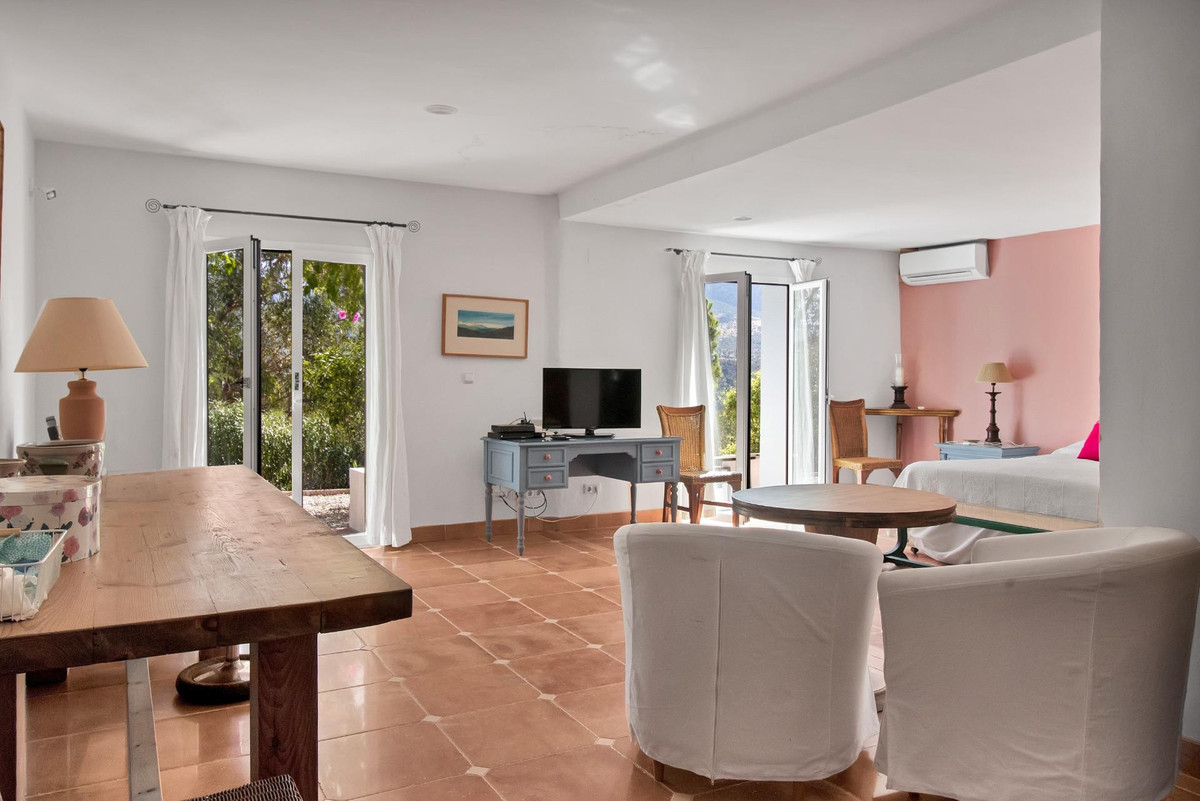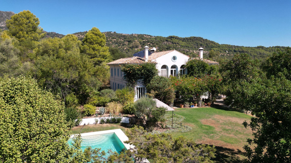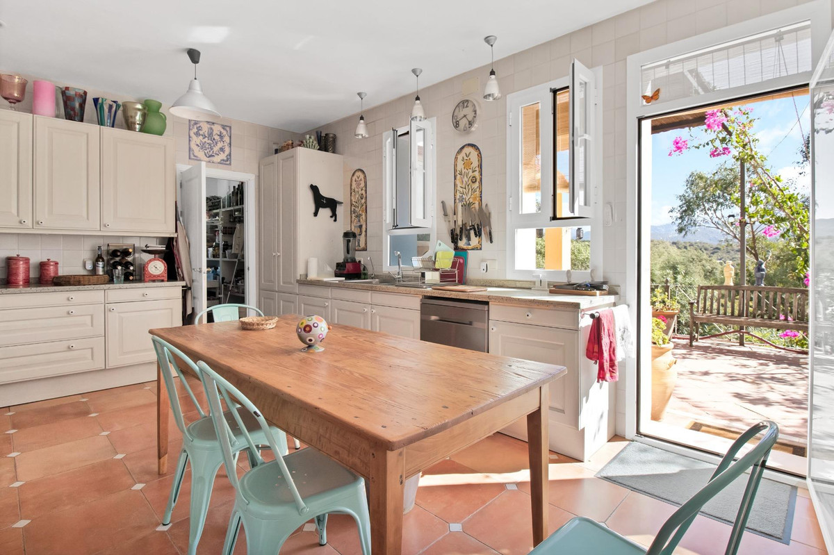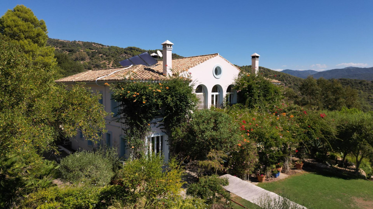 Une maison de campagne unique, nichée dans un écrin de verdure luxuriante, entourée de plantes vivaces et offrant une vue imprenable sur l'horizon. Unique par son esthétique, qui évoque une villa toscane, elle est conçue pour la vie de famille, avec de vastes espaces baignés de lumière où intérieur et extérieur se fondent harmonieusement, où la lumière et le paysage sont les maîtres mots. Unique également par sa modernité et son autonomie énergétique, cette maison offre un confort exceptionnel en toute saison. Chauffage au sol, climatisation… Ces équipements sont assurés par une importante installation de panneaux solaires de plus de 56 m² (stratégiquement placée et invisible de l'extérieur), une installation solaire de 24 kW, deux convertisseurs de 10 kW et une batterie de 20 kW, ainsi qu'une borne de recharge pour véhicule électrique. De plus, la propriété bénéficie d'un approvisionnement en eau par puits, la région étant riche en eau. Une rivière coule à proximité, offrant la possibilité de se baigner en été. Construite en 2000, la maison est orientée plein sud. La maison comprend sept chambres avec salles de bains privatives et plusieurs espaces polyvalents (bureau, atelier, bibliothèque, etc.). Elle est entourée d'un vaste jardin luxuriant, d'une grande pelouse et d'une charmante piscine avec de larges terrasses ensoleillées et un bain de glace pour les plus courageux. À l'arrière, on trouve un grand potager et un poulailler. Une allée privée, bordée de cyprès, mène à la maison et offre un grand parking. La porte principale s'ouvre sur un hall d'entrée lumineux qui dessert le salon avec de grandes portes vitrées. Attenante, une généreuse terrasse couverte se transforme en pièce à vivre en été. Une salle à manger séparée communique avec la cuisine allemande SieMatic entièrement équipée, ainsi qu'avec un cellier comprenant trois réfrigérateurs et un congélateur. La cuisine et la salle à manger s'ouvrent sur une terrasse exposée à l'est, aménagée avec une cuisine d'été. La vue sur la Sierra Crestellina y est à couper le souffle. L'autre aile du rez-de-chaussée abrite une bibliothèque ou une salle de télévision, entièrement équipée d'étagères. On y trouve également une grande chambre d'amis avec cheminée, placards intégrés et salle de bains privative. Cette chambre donne sur le jardin. Au premier étage se trouve un palier spacieux pouvant servir de salon supplémentaire ou d'atelier d'artiste. La grande suite parentale, avec son plafond mansardé, comprend un dressing avec puits de lumière et une salle de bains privative. Les fenêtres offrent une vue sur les jardins et la profusion de fleurs qui ornent la terrasse couverte du rez-de-chaussée. La suite parentale communique avec une autre chambre dotée d'une salle de bains. Cette dernière peut servir d'annexe à la suite principale, mais est également accessible depuis le palier et peut être utilisée comme chambre indépendante. À ce même étage se trouvent également un grand bureau (ou chambre supplémentaire) avec étagères intégrées et, de l'autre côté du palier, deux autres chambres avec salle de bains privative.Le rez-de-jardin, d'une superficie de plus de 300 m², comprend une buanderie, un grand atelier/studio, une cave, un débarras et un local technique. À l'est se trouve un appartement de service avec cuisine-séjour, chambre, salle de bains et terrasse et jardin privatifs. Une autre grande suite d'invités, avec salle de bains et kitchenette, s'ouvre également sur le jardin. Cette luxueuse maison de campagne à vendre en Andalousie offre de nombreux atouts : piscine extérieure, trois cheminées, arrosage automatique des jardins, parquet et sols en travertin, fenêtres à double vitrage et espace barbecue. Carrelage décoratif portugais. De vastes espaces sont aménagés pour un potager. L'eau provient d'un puits privé. Cette propriété exclusive est située à seulement 15 minutes de Gaucin, 30 minutes de la plage, 45 minutes de Marbella et Sotogrande, et à 1h30 de l'aéroport international de Malaga.