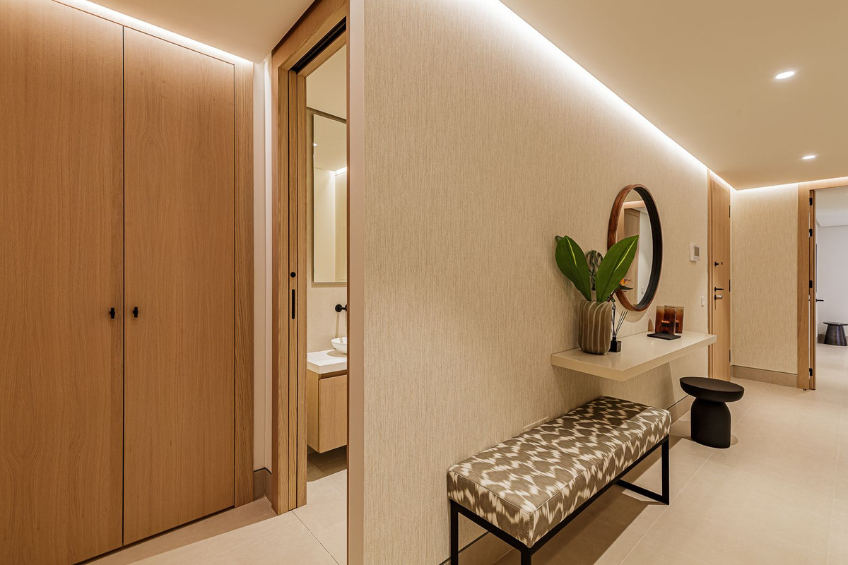 L'immeuble, achevé en 2024, comprend une réception/conciergerie ouverte 24h/24, une impressionnante piscine sur le toit au 21e étage avec bar réservé aux résidents, une piscine intérieure chauffée avec solarium, une piscine extérieure gratuite avec solarium séparé et lits balinais, ainsi qu'un espace spa intégrant une autre piscine intérieure.