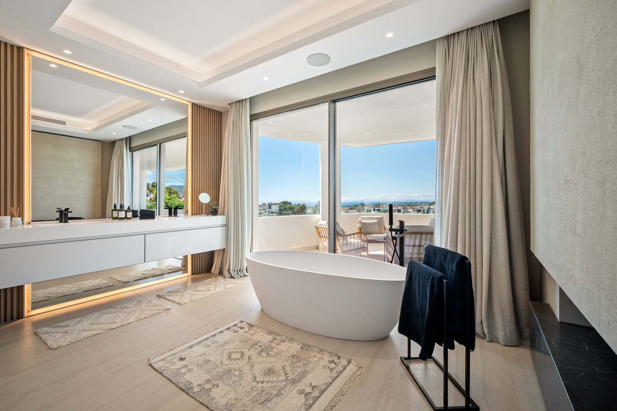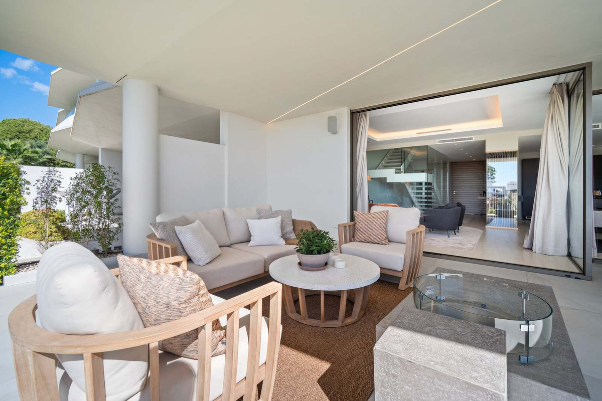 Conçue pour estomper la frontière entre intérieur et extérieur, la résidence dispose d'une vaste terrasse couverte, idéale pour les repas et les réceptions en famille ou entre amis. Le solarium sur le toit, aménagé sur mesure, est doté d'une piscine privée et offre une vue panoramique imprenable sur la mer Méditerranée, Gibraltar, l'Afrique et l'emblématique montagne de La Concha à Marbella.