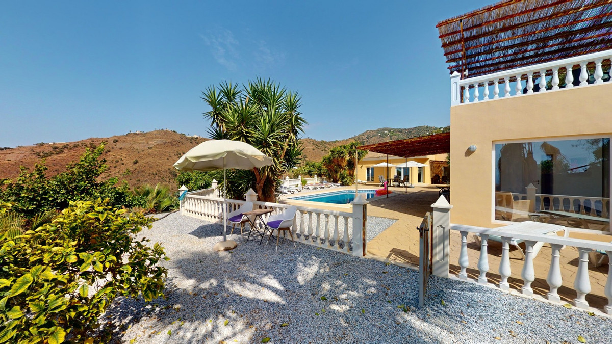 Découvrez l'incarnation même de la vie méditerranéenne avec cette finca exclusive à Algarrobo, située sur la magnifique Costa del Sol. Nichée dans une intimité absolue, cette propriété unique offre une vue panoramique à couper le souffle sur la Méditerranée scintillante et la campagne andalouse environnante. Avec une surface habitable totale de près de 190 m² et un terrain de 2 445 m², cette finca promet luxe et tranquillité. La propriété comprend cinq chambres spacieuses et trois salles de bains modernes, idéales pour recevoir famille et amis. Le cœur de la maison est un élégant salon avec une cheminée chaleureuse, donnant sur une cuisine américaine contemporaine équipée d'appareils haut de gamme. À l'extérieur, vous trouverez une piscine accueillante située entre la maison principale et les dépendances, offrant un espace parfait pour se détendre ou recevoir tout en profitant de la vue imprenable. Pour les amoureux de la nature, le vaste terrain offre l'opportunité idéale de cultiver votre propre paradis tropical, qu'il s'agisse d'une manguiererie, d'une plantation d'avocatiers ou d'orangers, comme vous en avez pu voir à la télévision. Cette finca offre un parfait mélange de luxe, d'intimité et de charme andalou, à quelques minutes seulement des plages de la Costa del Sol et de toutes les commodités. Bien plus qu'une simple propriété, c'est un art de vivre. Imaginez-vous vous réveiller chaque matin au son des vagues et sous la douce chaleur du soleil espagnol. Explorez la galerie photos ou effectuez une visite virtuelle 3D pour apprécier la beauté et la sérénité de cette demeure unique. Si vous rêvez d'une vie ensoleillée, cette finca à Algarrobo vous attend. Contactez-nous dès aujourd'hui pour organiser une visite privée et faire de ce coin de paradis andalou votre chez-vous.