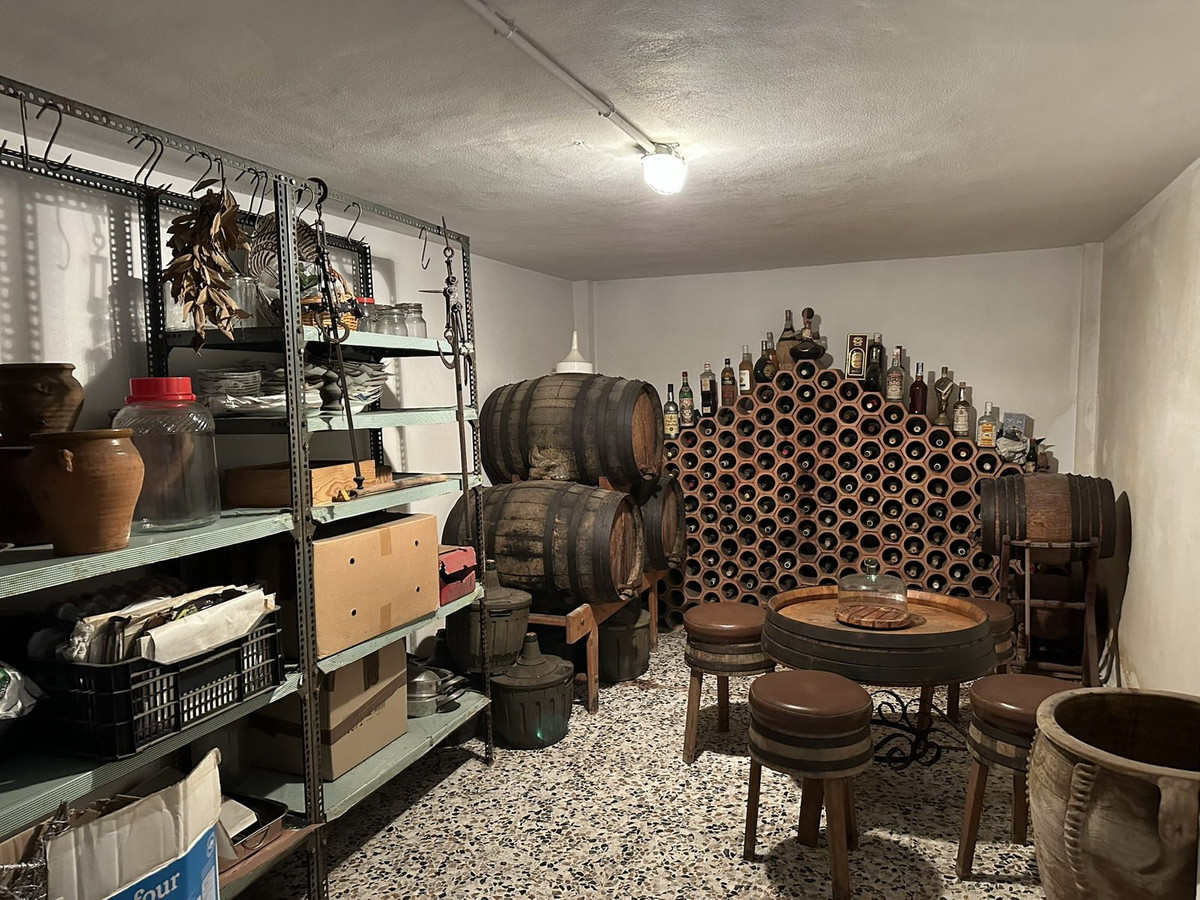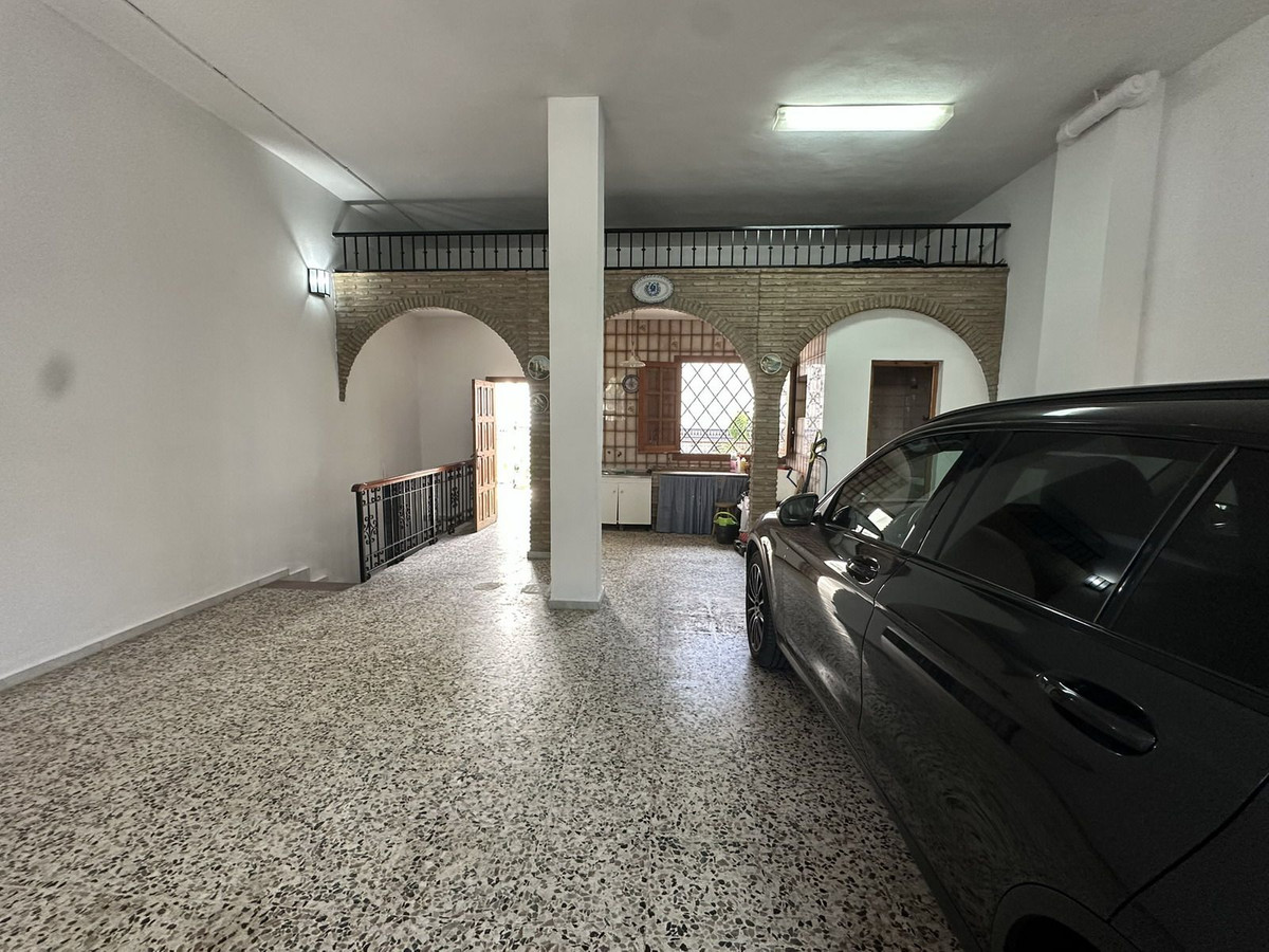 Au rez-de-chaussée, on trouve un grand garage, des toilettes pour invités et une pièce actuellement aménagée en cave à vin, idéale pour les réunions de famille ou le stockage de pièces spéciales. De là, on accède à un magnifique patio intérieur, partiellement couvert et partiellement à ciel ouvert, qui apporte lumière naturelle et ventilation à la maison.