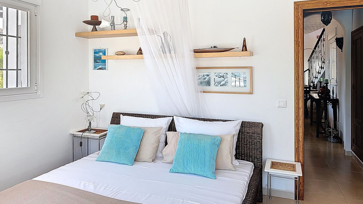 La villa comprend trois chambres spacieuses et trois salles de bains élégantes, dont deux attenantes. La suite parentale est un véritable atout, avec son grand dressing et son balcon privé offrant une vue imprenable sur la mer. À l'extérieur, le plaisir se poursuit. La grande piscine privée de 10 x 5 mètres invite à la détente et à la relaxation avec une vue dégagée sur la mer. La terrasse couverte est idéale pour les longues journées d'été et les douces soirées, tandis que le sauna privé apporte une touche de luxe au quotidien. Des équipements supplémentaires tels qu'un cellier, des panneaux solaires, un portail électrique et un système de sécurité rendent cette propriété à la fois sûre et durable.
