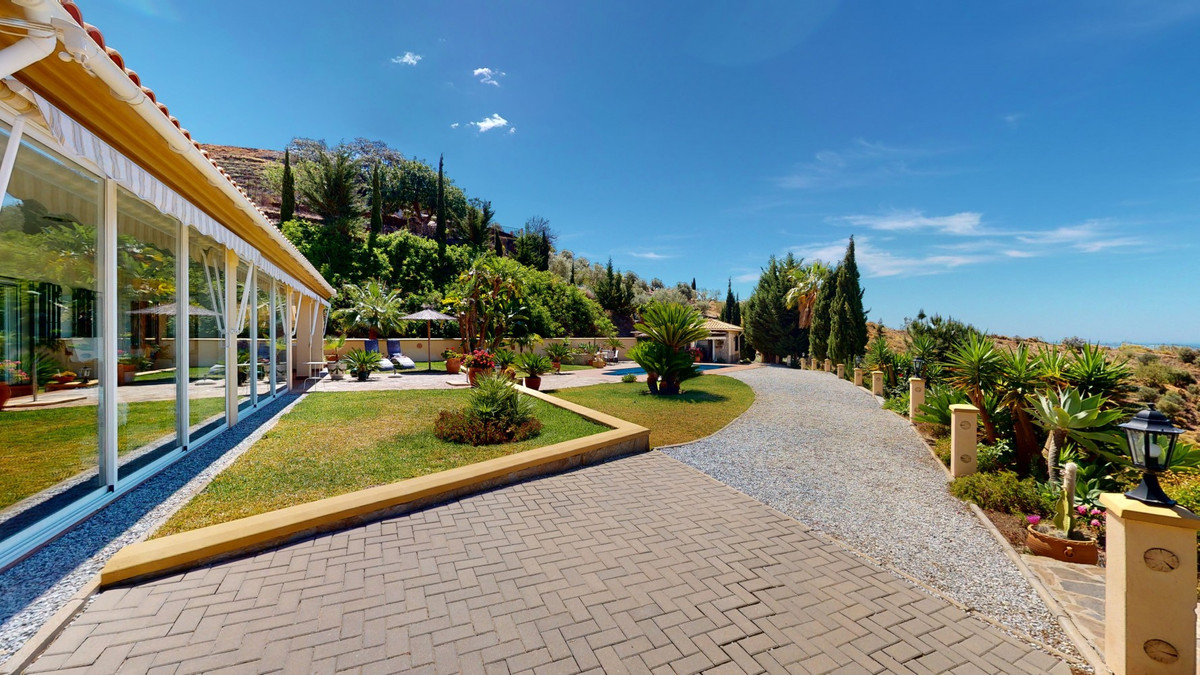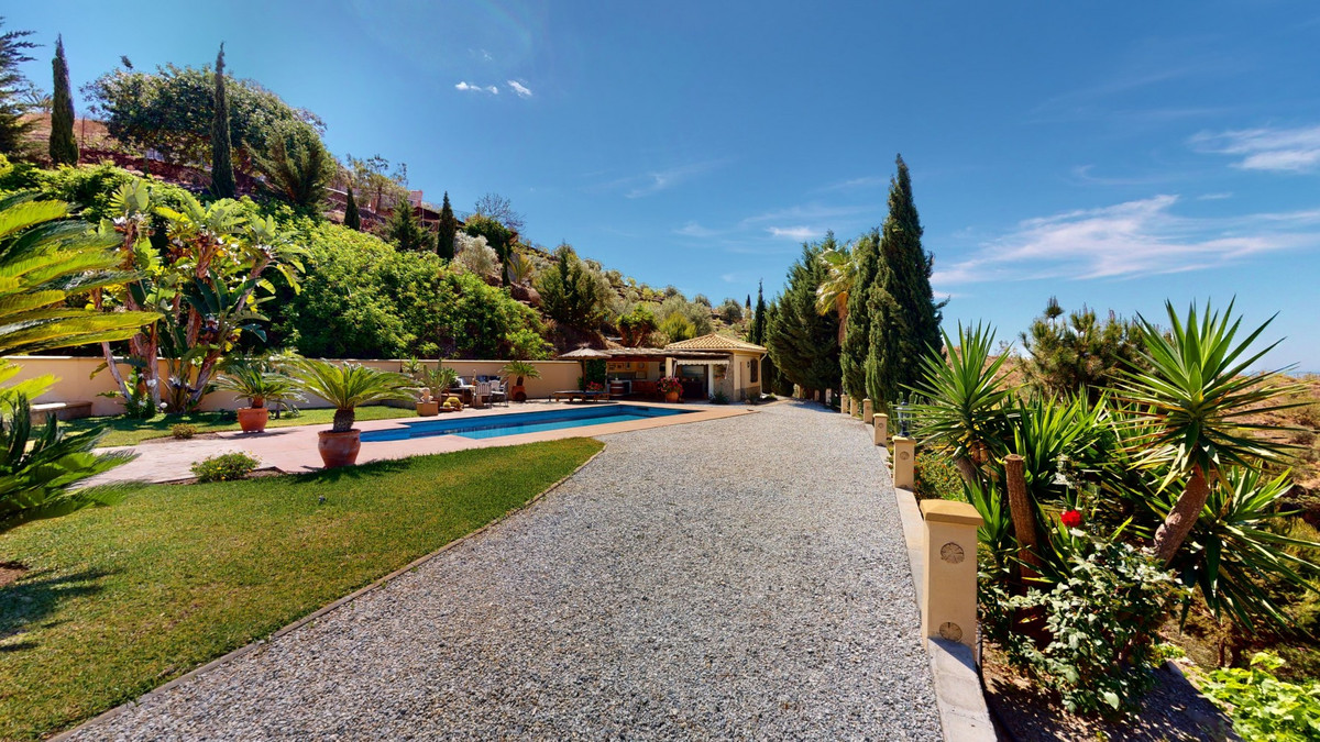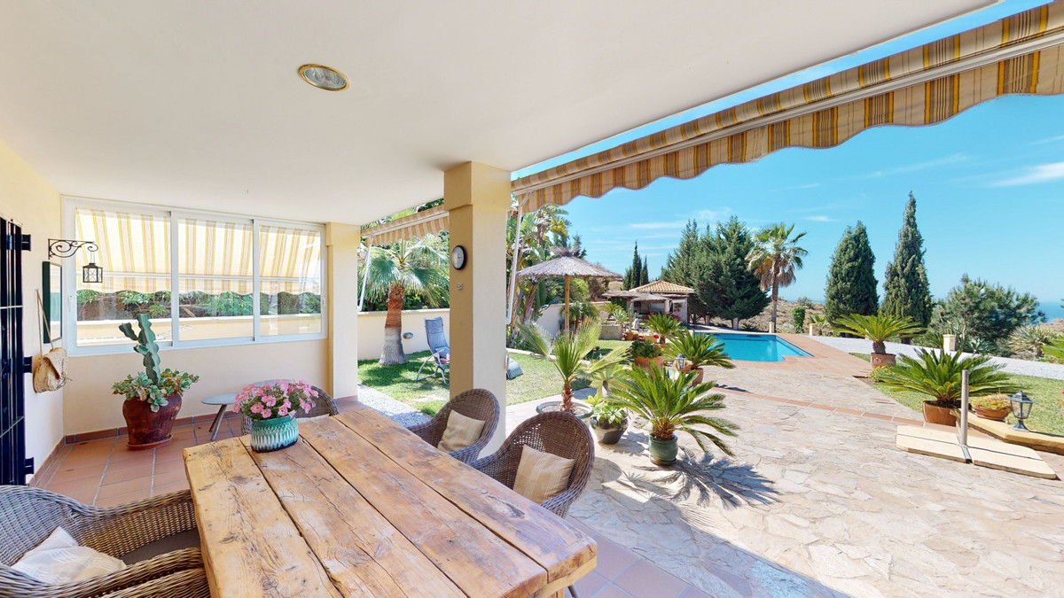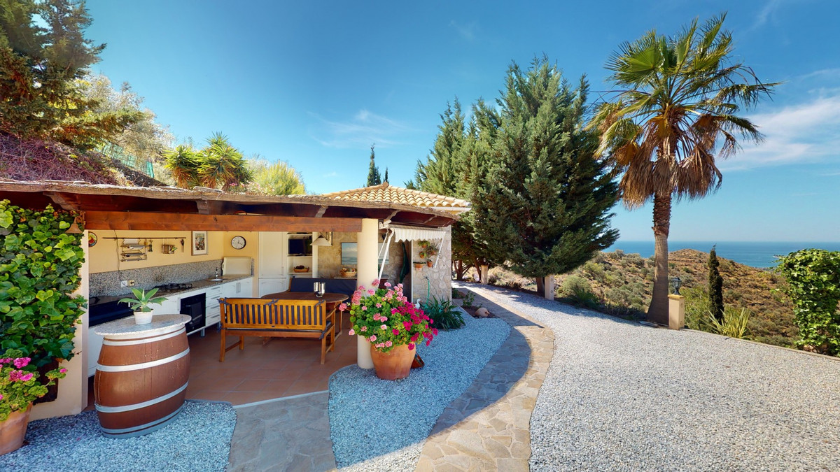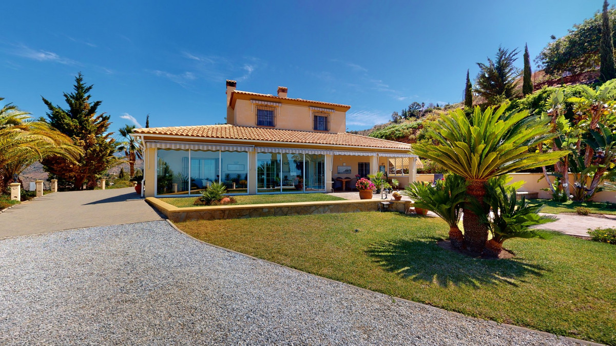 Une vue imprenable, une orientation sud-ouest idéale : la promesse d'un bonheur absolu. Cette villa d'exception, construite avec des matériaux de très haute qualité, offre un cadre idyllique avec un magnifique jardin comprenant spa, sauna et piscine, ainsi qu'une luxueuse cuisine d'été avec coin repas intégré. Située entre Algarrobo et Sayalonga, cette villa unique vous propose tout cela et bien plus encore. Son emplacement privilégié garantit une intimité totale et vous offre une vue romantique sur le coucher du soleil, se reflétant tantôt sur la Méditerranée, tantôt, selon la saison, sur le fabuleux paysage montagneux de Malaga. Un chemin privé asphalté, bordé de pins, mène à l'imposante entrée de la propriété, où un îlot de palmiers se dresse au milieu d'un rondin. Plusieurs places de parking, un garage et un grand abri voiture complètent le rez-de-chaussée. Au premier étage se trouvent le salon avec une cheminée séparée, des toilettes invités, une buanderie, une cuisine moderne donnant sur une véranda spacieuse et parfaitement équipée, ainsi qu'une très belle chambre avec salle de bains privative. À l'étage de la villa se trouve la suite parentale avec une spacieuse salle de bains privative et un dressing. La propriété est équipée du chauffage central, de la climatisation et d'une cheminée. Le terrain est agrémenté d'une variété d'arbres fruitiers, de palmiers, de plantes tropicales et de pins. La plage et la mer, ainsi que le golf et le port de plaisance de Caleta, sont à 15 minutes, et l'aéroport de Malaga à seulement 40 minutes. Nous serions ravis de vous présenter prochainement cette propriété de rêve, en personne ou par visite virtuelle. Car ce monde est unique, à l'image de notre Axarquía. En Andalousie. Sur la Costa del Sol. Ici, sous le soleil…