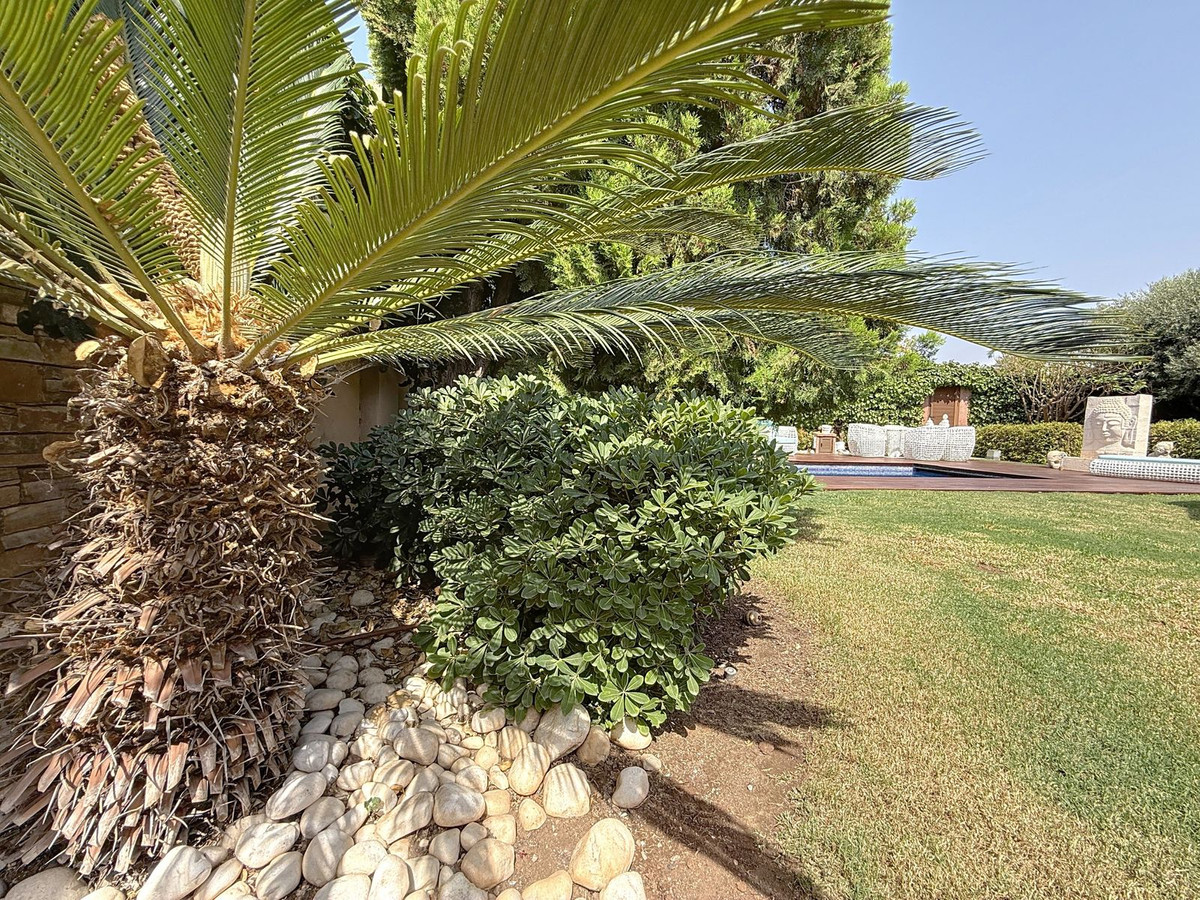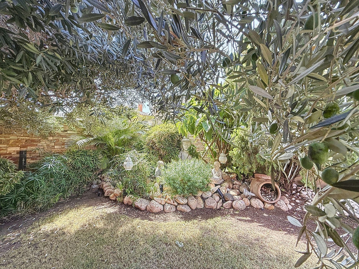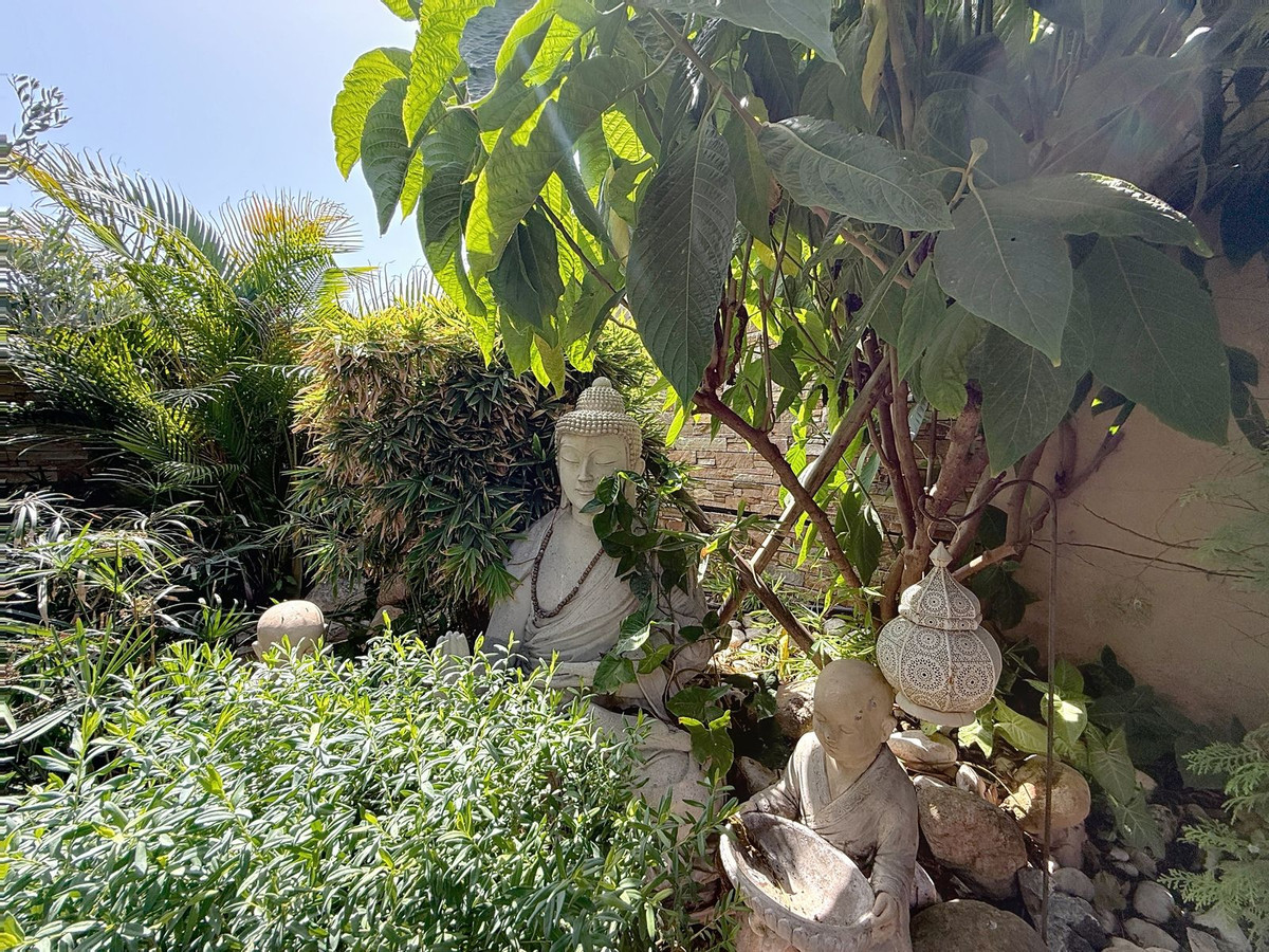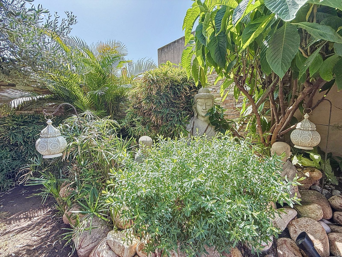 Dès que vous franchissez le portail privé, une sérénité absolue vous enveloppe. Les jardins forment un univers à part : un olivier centenaire veille sur la propriété, des statues de Bouddha invitent à la quiétude, des terrasses ombragées et des coins lounge intimes invitent à la détente. Au cœur de ce havre de paix se trouve une piscine de 6 x 4 m avec jacuzzi, nichée au cœur d'une végétation luxuriante et à l'ombre bienfaisante d'arbres matures – une oasis rare dans ce lieu privilégié.