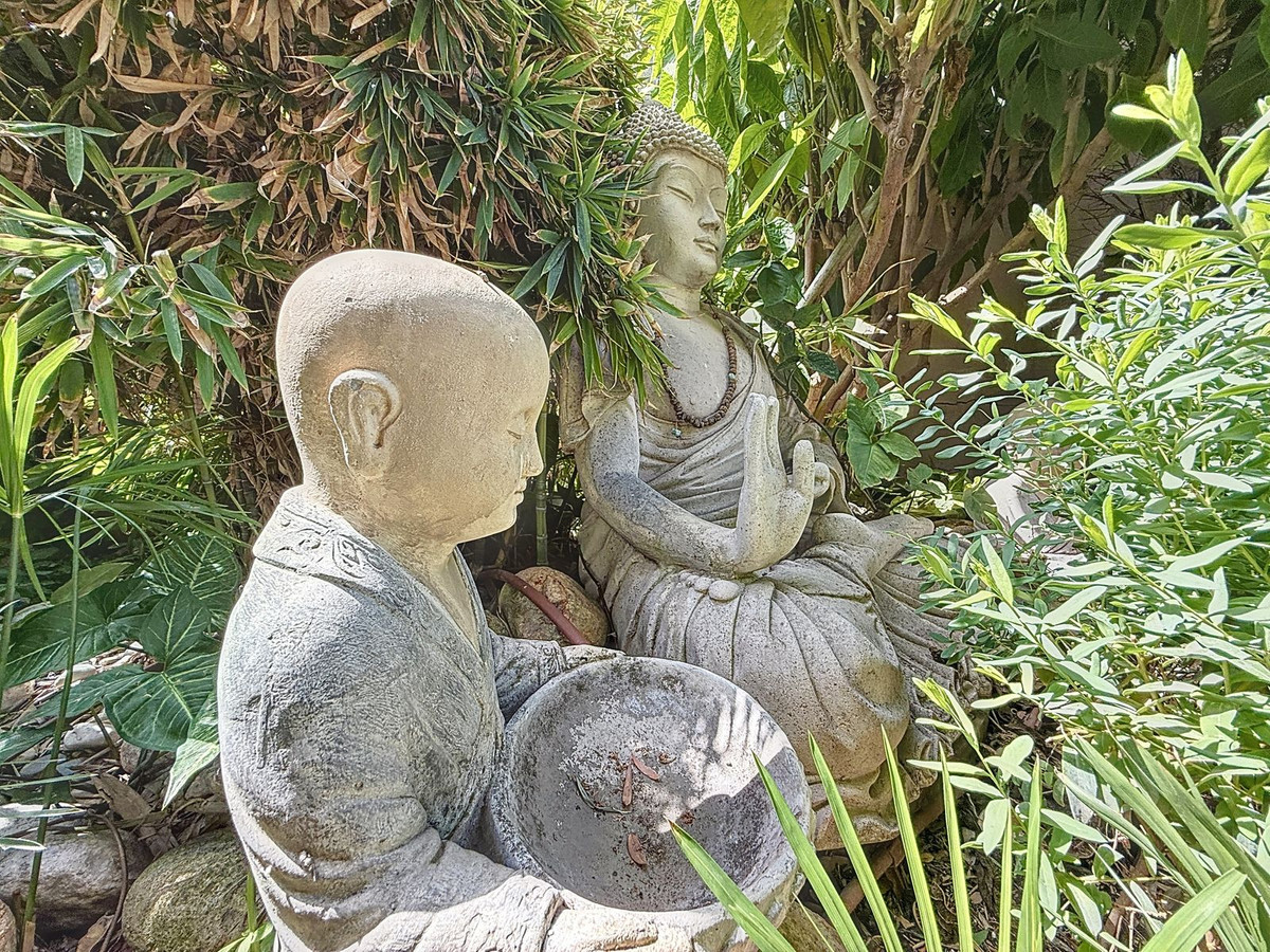 • Des jardins paysagers empreints de sérénité, agrémentés d'oliviers centenaires et de statues de Bouddha