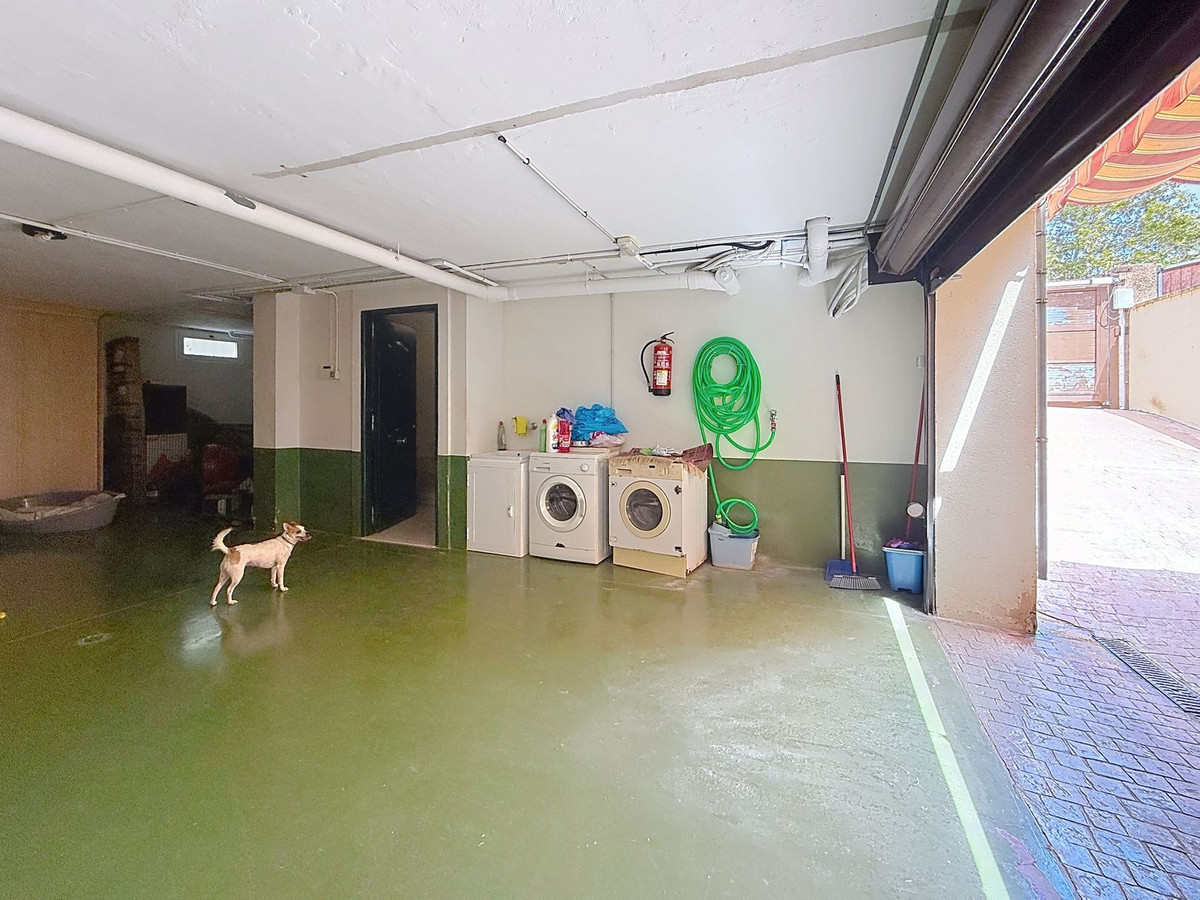 Au niveau inférieur, la villa dévoile un vaste garage pouvant accueillir 3 à 4 voitures, offrant un espace non seulement pour les véhicules, mais aussi pour du rangement ou la création d'un logement d'invités supplémentaire. On y trouve également le système de réserve d'eau indépendant : la propriété est directement raccordée au réseau municipal, mais bénéficie de sa propre réserve pour garantir un approvisionnement constant et fiable. L'ensemble du jardin est équipé d'un système d'arrosage automatique électrique avec programmateur, simplifiant ainsi l'entretien.