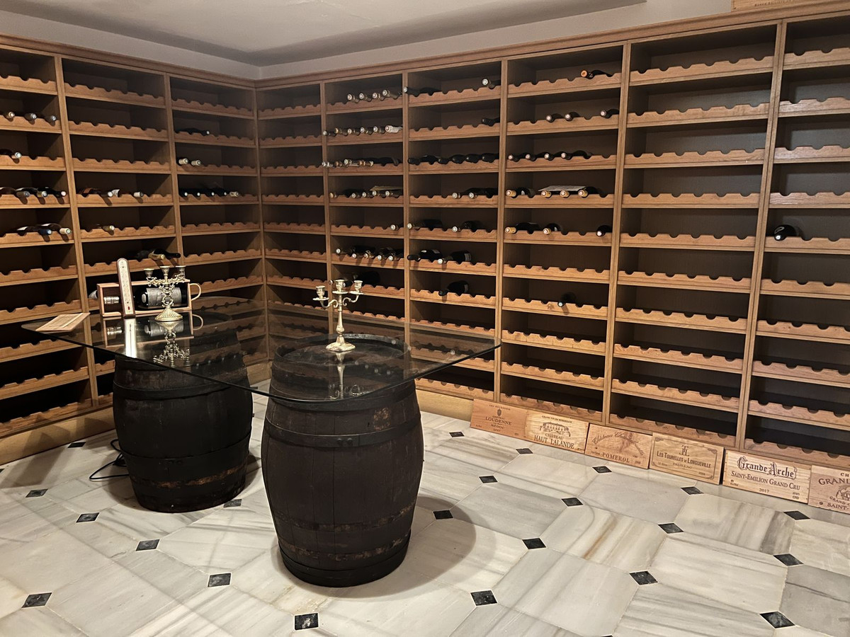 ✨ Un espace de divertissement au sous-sol comprenant une salle de réception, une cave à vin, une chambre et des toilettes