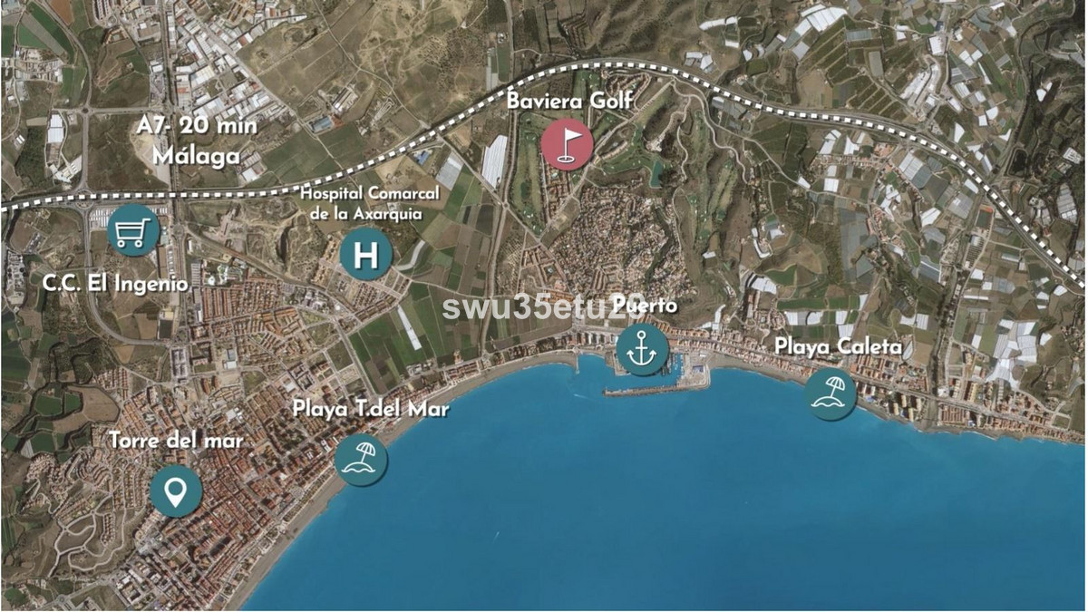 Situé à 500 mètres de Caleta de Vélez, célèbre pour son port de plaisance et ses magnifiques plages, parmi les plus belles de la Costa del Sol, et à 20 minutes de Malaga avec un accès direct à l'autoroute.