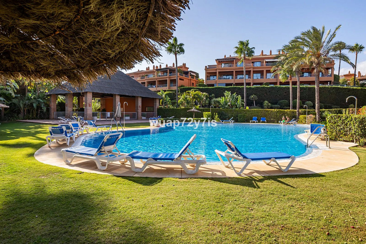 Located in the renowned Benatalaya urbanization—one of Estepona’s most private and secure gated communities—this elegant ground-floor residence offers exceptional tranquility. Its corner position and secluded private garden create a peaceful haven surrounded by beautifully landscaped Mediterranean greenery.