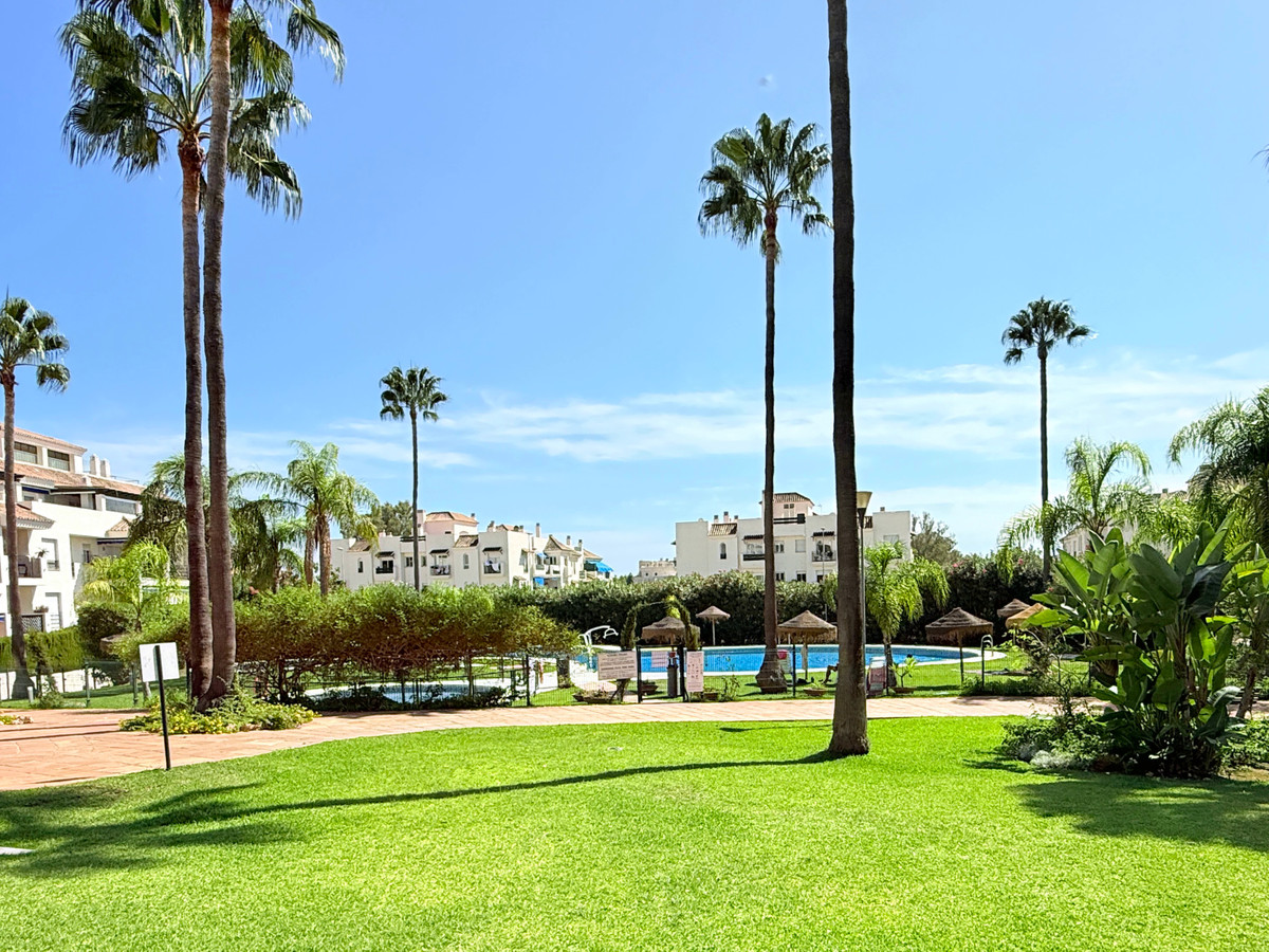 Découvrez la résidence idéale au cœur de la Costa del Sol. Nous sommes ravis de vous présenter ce magnifique appartement, idéalement situé entre Marbella et San Pedro de Alcántara. Il vous offre le meilleur des deux mondes : la tranquillité d'un quartier résidentiel et le luxe et le dynamisme de Puerto Banús, accessible en seulement 10 minutes à pied, avec ses plages réputées. Dès l'entrée, vous serez séduit par un séjour-salle à manger spacieux et lumineux, qui s'ouvre harmonieusement sur une cuisine moderne et entièrement équipée. Cet agencement ouvert optimise l'espace et crée un cadre idéal pour recevoir. De larges baies vitrées donnent sur une superbe terrasse exposée ouest, l'endroit parfait pour dîner en plein air tout en admirant les couchers de soleil inoubliables de Marbella. L'espace nuit comprend trois chambres. Ce qui rend ce bien unique, c'est que chaque chambre bénéficie d'un accès direct à une seconde terrasse-jardin, une oasis privée plus vaste exposée est. Imaginez-vous vous réveiller et savourer votre premier café du matin dans votre propre jardin, baigné par le soleil matinal. Cet agencement exceptionnel vous offre tout le confort d'un appartement allié à l'espace extérieur et au style de vie d'une villa. La propriété fait partie d'un complexe résidentiel paisible et bien entretenu, avec de vastes espaces verts et une magnifique piscine commune – idéale pour se détendre et profiter du climat de la Costa del Sol. Elle est équipée de tout le confort moderne, notamment de volets roulants électriques pour un confort optimal. Le prix comprend également une place de parking privée et un débarras pratique, vous assurant ainsi une tranquillité d'esprit totale concernant le stationnement ou le rangement. Ne manquez pas cette opportunité d'acquérir une propriété d'exception qui allie emplacement, design et un style de vie incomparable. Parfaite comme résidence principale, résidence secondaire ou investissement locatif rentable. Contactez-nous dès aujourd'hui pour organiser une visite et découvrir tout ce que cette propriété a à offrir. Le document d'information abrégé (DIA) est disponible. Frais : Taxes (ITP ou TVA + AJD) + Frais de notaire et d'enregistrement foncier. FTN