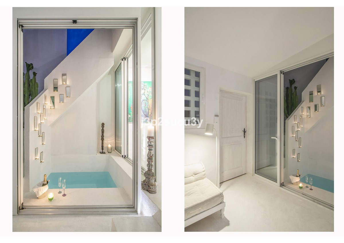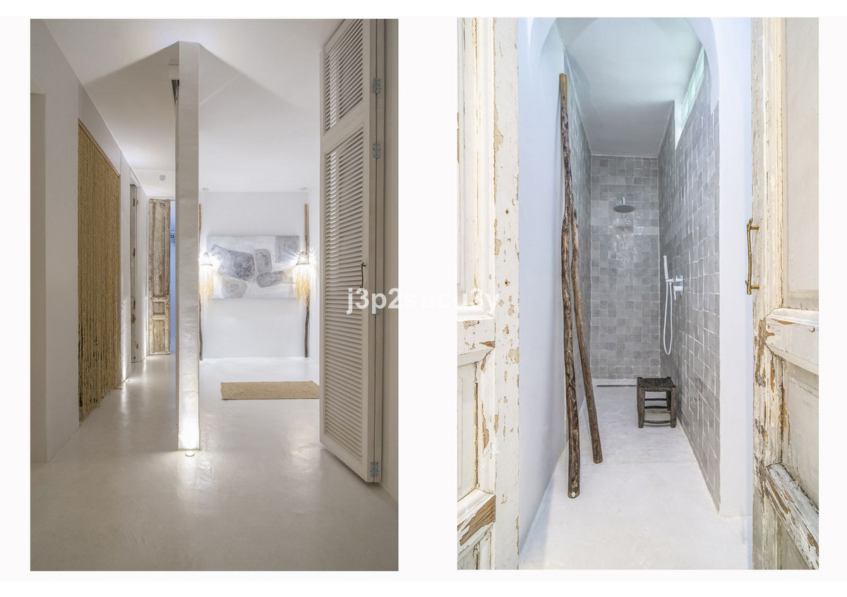 Située dans l'urbanisation Pueblo Andaluz, la propriété allie une architecture traditionnelle — façades blanchies à la chaux, toits de tuiles en terre cuite et cours pavées — à un intérieur inspiré du design ethnique contemporain. Matériaux naturels, bois précieux, tissus biologiques et pièces artisanales créent une atmosphère lumineuse et sereine.