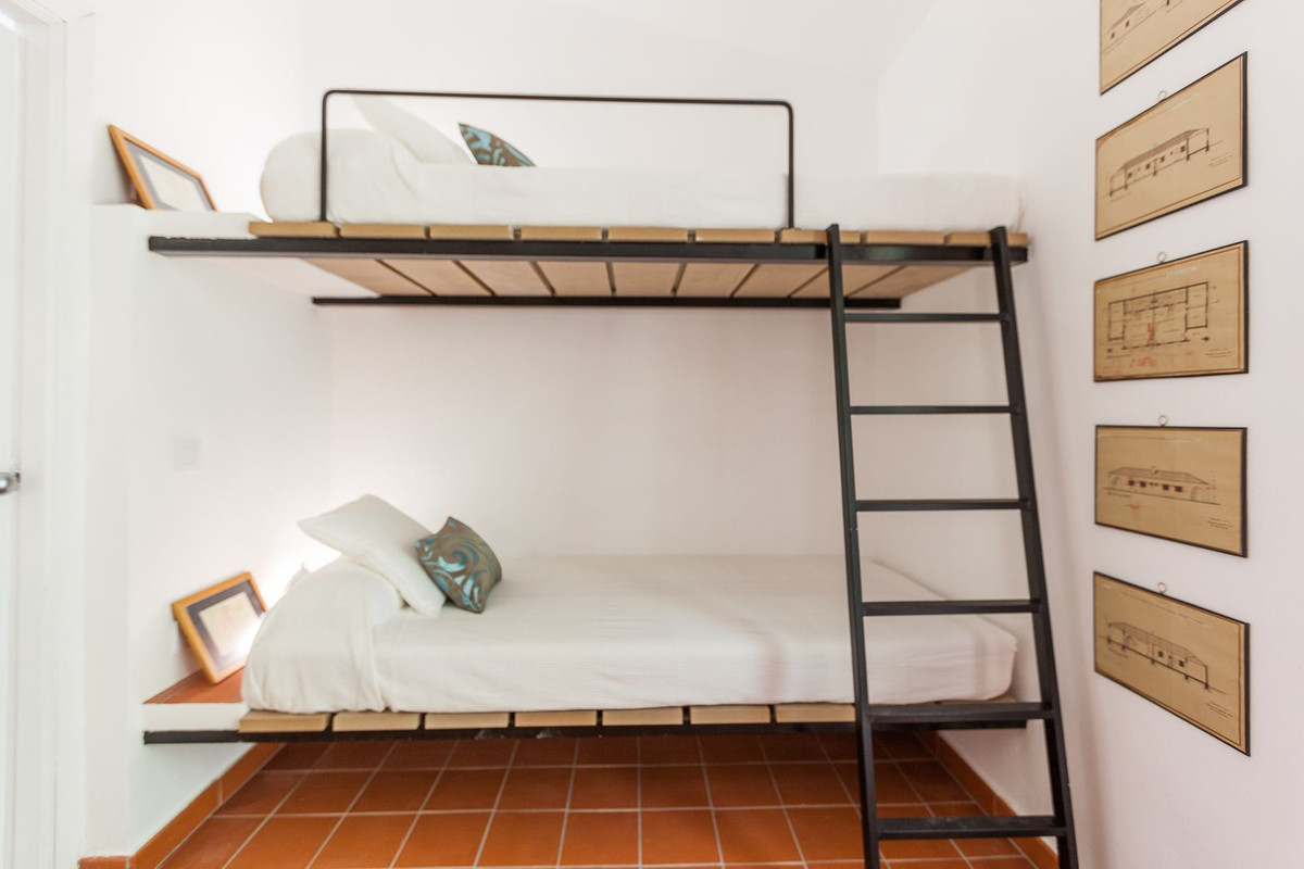 Il est vendu entièrement meublé avec des meubles sur mesure en pin massif.