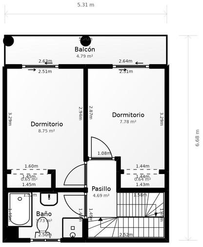 Le deuxième étage comprend deux chambres confortables, chacune donnant sur une terrasse, ainsi qu'une salle de bain complète.