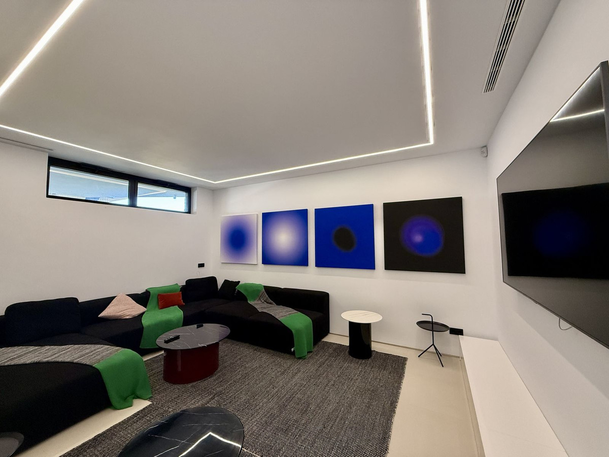 Cette maison offre une vue panoramique imprenable sur la mer et la montagne, visible depuis de multiples points de vue. À l'intérieur, vous trouverez une cuisine entièrement équipée, de nombreux placards intégrés, une terrasse couverte, une terrasse privative, une salle de jeux, une salle de sport, des pièces de rangement et une buanderie, ainsi qu'un sous-sol. Plusieurs chambres disposent d'une salle de bains privative, et la propriété est équipée de double vitrage pour un confort optimal. Le parking est privé et sécurisé, et la villa comprend des équipements pratiques tels qu'un système d'approvisionnement en eau potable et des panneaux solaires photovoltaïques, alliant luxe et durabilité. Le mobilier est optionnel, offrant ainsi une grande flexibilité aux acquéreurs.