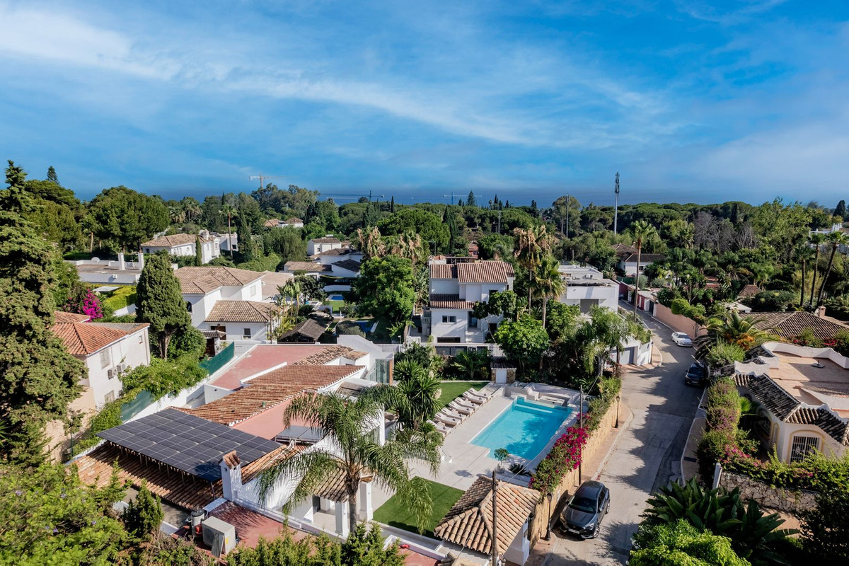 Nichée dans l'enclave exclusive de Nagueles, le long du célèbre Golden Mile de Marbella, cette villa de six chambres entièrement rénovée offre la quintessence de la vie de luxe. Bénéficiant d'un emplacement privilégié à environ 1,8 km de la plage et à seulement 800 m de l'école internationale locale et du parc naturel, cette résidence allie harmonieusement commodité et tranquillité.