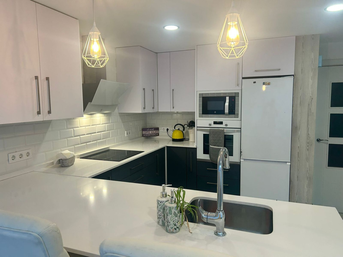 Maison de ville récemment rénovée à Arroyo de la Miel, offrant confort moderne et espaces de vie généreux. Elle comprend trois chambres, dont une suite parentale avec dressing et une autre avec placards intégrés. Deux salles de bains entièrement équipées, l'une avec baignoire hydromassage et l'autre avec douche à l'italienne. L'élégante cuisine a été rénovée avec un îlot central et un plan de travail en Silestone. Un cellier double hauteur offre un espace de rangement supplémentaire appréciable. La maison est équipée d'une climatisation réversible et d'une cheminée dans le séjour. Profitez de terrasses privatives à l'avant et à l'arrière, de volets roulants de sécurité, d'une porte d'entrée renforcée et de l'absence de charges de copropriété.