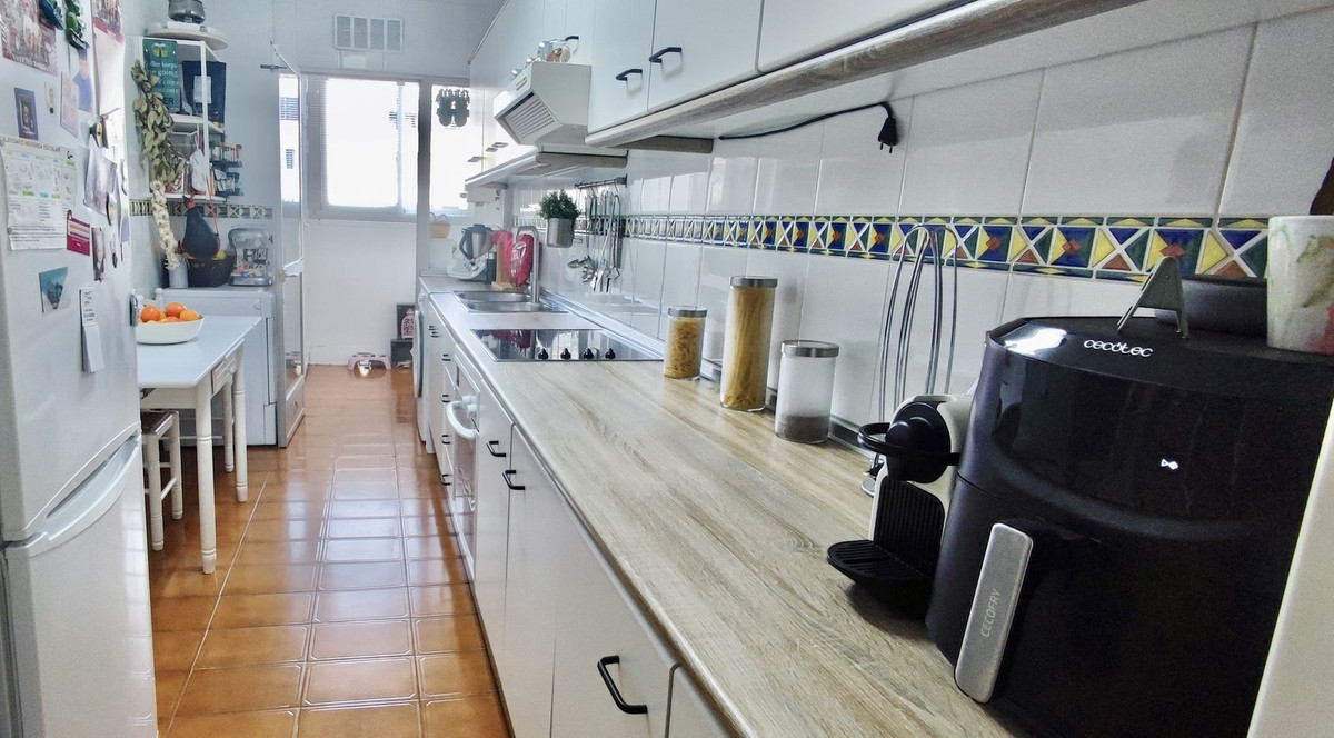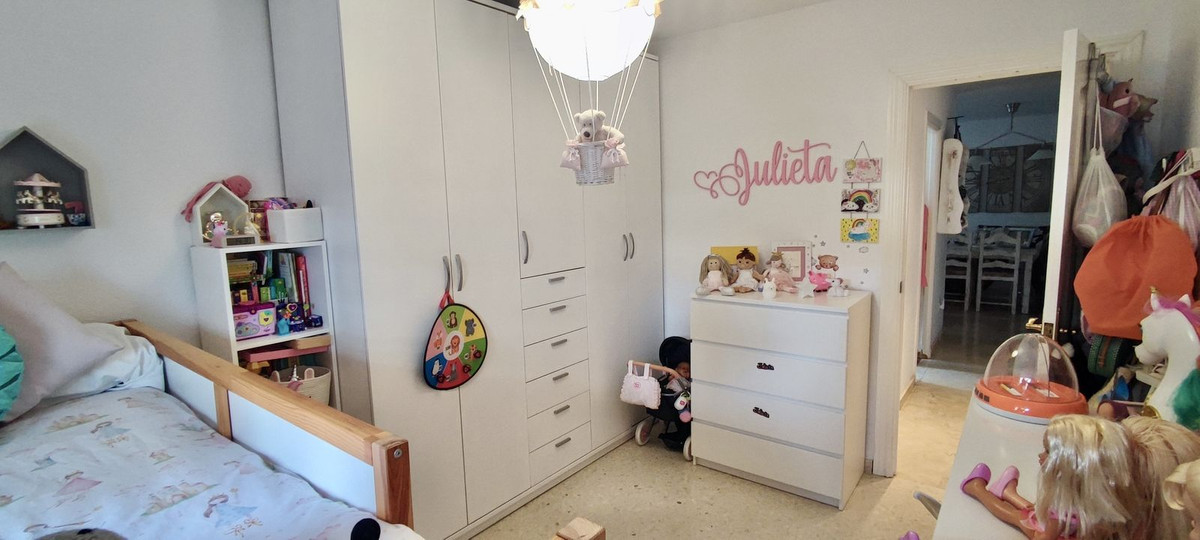 Ce bien se situe au deuxième étage d'un immeuble avec ascenseur et dispose d'une surface habitable de 107 m², répartie entre une chambre principale, deux chambres secondaires, une salle de bains complète (avec possibilité d'ajouter une deuxième salle de bains), une cuisine séparée entièrement aménagée et équipée avec buanderie, et un spacieux séjour-salle à manger d'environ 25 m² avec accès direct à une agréable terrasse de 8 m², orientée à l'est et offrant une vue dégagée sur les parties communes.