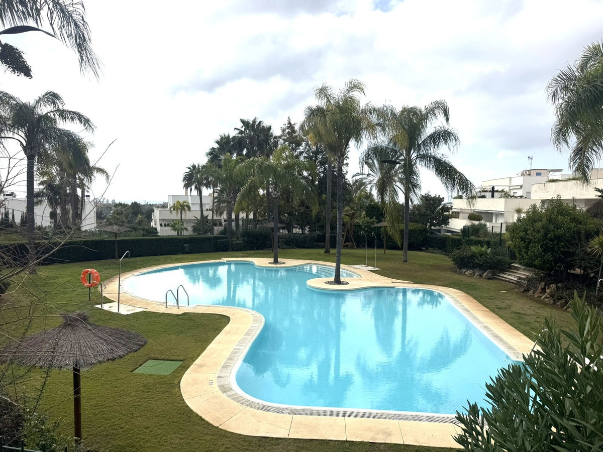 Magnifique et spacieux appartement de 3 chambres au rez-de-chaussée, situé à Nueva Andalucía, Marbella. Niché au sein d'une résidence très prisée et bien entretenue, il se trouve à proximité immédiate des commerces et du célèbre Real Club de Pádel. L'appartement comprend un séjour lumineux et spacieux, une cuisine entièrement équipée et rénovée, ainsi que trois grandes chambres doubles. La chambre principale dispose d'une salle de bains privative, tandis que les deux autres chambres partagent une salle de bains familiale bien aménagée. Orienté plein sud, l'appartement bénéficie d'un ensoleillement optimal tout au long de la journée, avec une grande terrasse et un jardin privatif offrant un accès direct aux espaces communs. La résidence dispose de deux piscines, idéales pour profiter du climat exceptionnel de Marbella en toute saison.