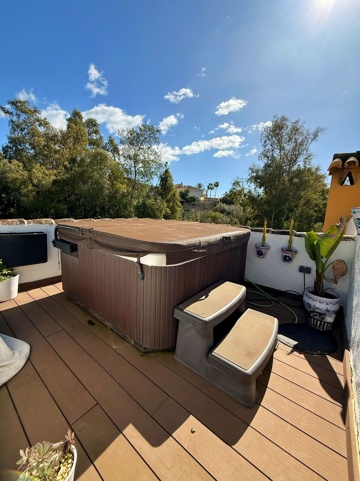 Cette propriété, récemment rénovée, offre un terrain d'environ 200 m² et une surface habitable de 110 m² répartie sur deux niveaux, ainsi qu'un magnifique solarium avec jacuzzi. Son orientation sud-ouest garantit une luminosité naturelle optimale tout au long de la journée.