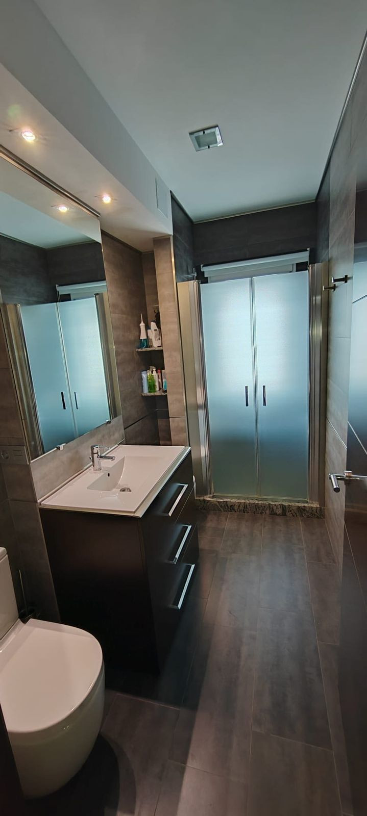 La propriété offre environ 60 m², répartis en 2 chambres avec placards intégrés, 2 salles de bains complètes avec douches à l'italienne et une cuisine américaine entièrement équipée avec coin repas, intégrée dans un espace salon-salle à manger lumineux et accueillant.