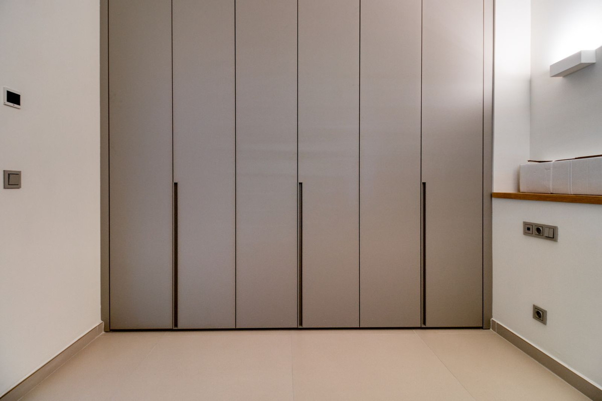 L'un des atouts majeurs de cette pièce est son système de cloisons coulissantes dans la chambre principale, qui s'ouvre harmonieusement sur le salon – un élément de design sophistiqué et flexible qui permet de créer une ambiance loft ouverte ou une intimité totale selon les envies.
