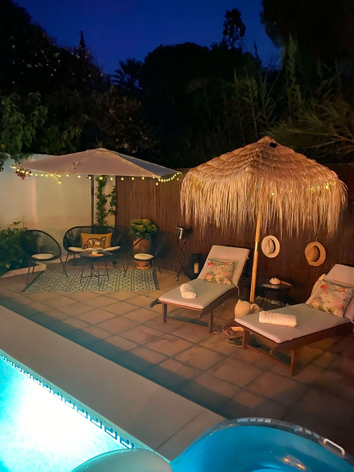 Au deuxième étage se trouve actuellement un magnifique et accueillant salon avec cheminée, donnant sur une superbe terrasse privée offrant une grande intimité et idéale pour profiter du soleil toute la journée. Orientée plein sud, elle bénéficie d'une vue dégagée imprenable sur le village de La Virginia et la mer en arrière-plan.