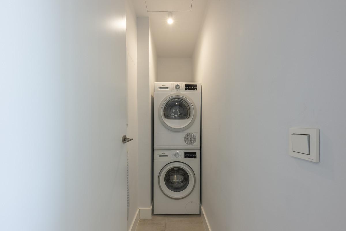 Le niveau inférieur propose une troisième chambre polyvalente, facilement divisible en deux, avec les pré-installations pour une salle de bain supplémentaire – offrant ainsi une grande flexibilité pour accueillir des invités, aménager un bureau ou servir de chambre familiale. La maison comprend également deux garages souterrains, un cellier et une buanderie séparée. Conçue pour un luxe discret, cette résidence allie tranquillité, style et confort dans l'un des quartiers les plus prisés de la Costa del Sol.
