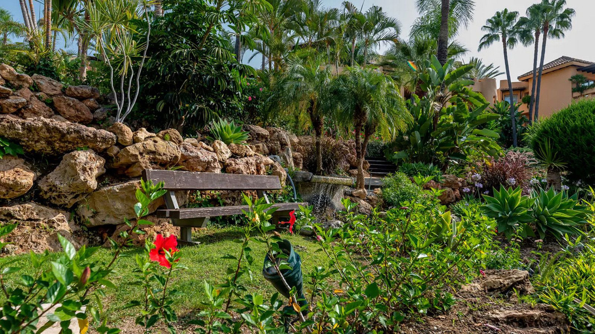 Ce complexe résidentiel, doté d'une sécurité 24h/24, de jardins tropicaux luxuriants, de piscines et de cascades, propose également un espace spa, un jacuzzi, une piscine intérieure et une salle de sport. Il est situé à environ 2 km du centre de Marbella et de ses plages. Conçu par le célèbre architecte Melvin Villarroel, il a été construit avec des matériaux haut de gamme et des caractéristiques uniques qui lui confèrent un caractère distinctif.