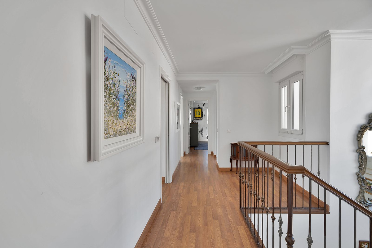 Occupant un terrain généreux de 923 m² et offrant environ 500 m² de surface habitable élégamment aménagée, cette villa, construite en 2011, a depuis été entièrement rénovée intérieurement avec un souci du détail irréprochable. Si l'intérieur reflète une élégance moderne, l'extérieur reste fidèle à ses racines andalouses, préservant le charme et l'authenticité de l'architecture traditionnelle du sud de l'Espagne.