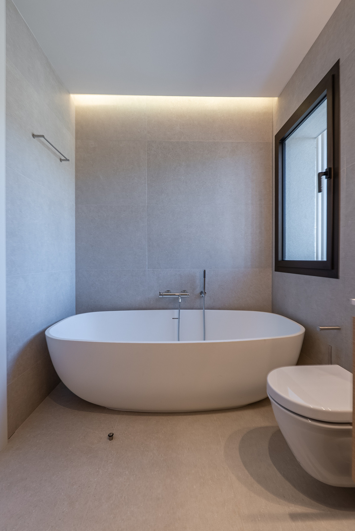 Confort climatique assuré par la climatisation réversible Daikin, le chauffage au sol dans les salles de bains et le chauffage au sol à eau en option dans tout le reste de la pièce.