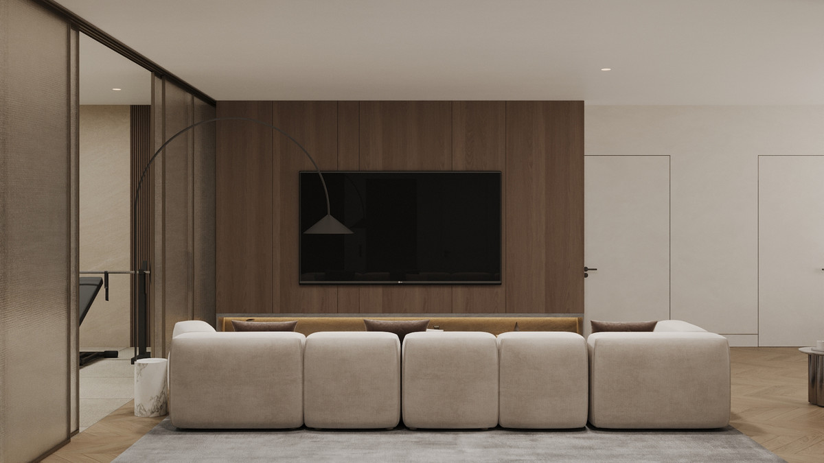 - Des baies vitrées du sol au plafond, qui mettent en valeur la lumière naturelle et l'ouverture spatiale.