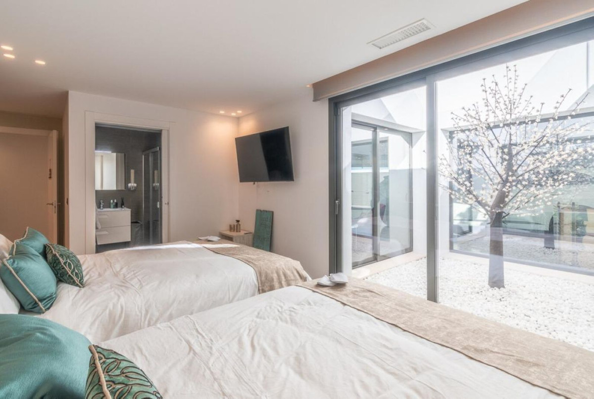 À l'extérieur, la propriété impressionne par sa superbe piscine privée, ses vastes terrasses ensoleillées et ses magnifiques jardins paysagers, parfaits pour recevoir ou se détendre sous le soleil andalou. La villa comprend également un parking privé, un système de sécurité et tout le confort nécessaire à un style de vie luxueux.