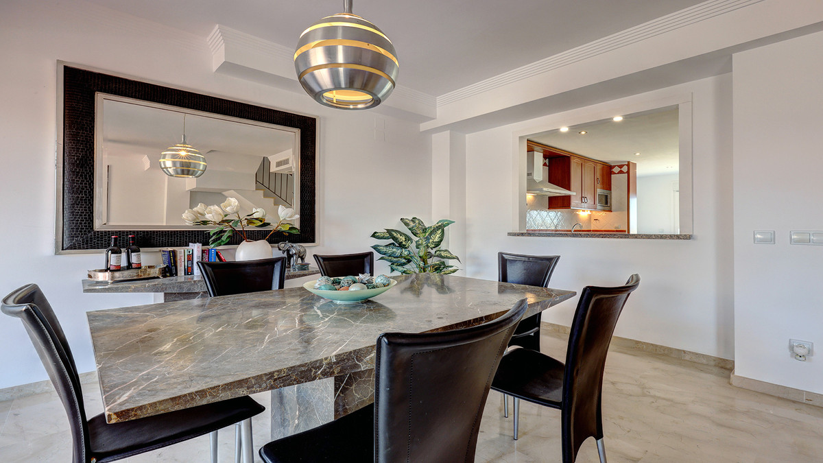 Magnifique maison de ville de quatre chambres située dans un complexe résidentiel sécurisé et arboré, au sein du golf de La Duquesa. Le complexe comprend de superbes jardins communs, quatre piscines communes et une aire de jeux. Des voies d'accès internes permettent de rejoindre la Marina de la Duquesa, avec ses nombreux bars, restaurants et cafés, ainsi que les belles plages.