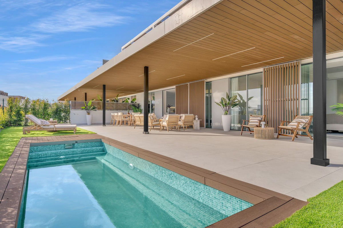 Rare maison de plain-pied surélevée de 4 chambres à Santa Clara Homes, offrant un style de vie de villa avec de généreux espaces extérieurs privés dans une communauté de luxe sécurisée à Marbella Est.