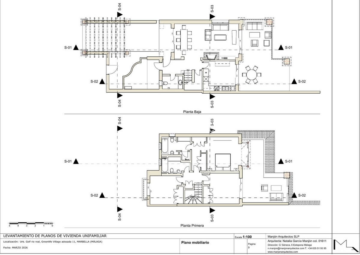All floors are finished with light beige marble (Crema Marfil marble), including the outdoor terraces on the ground floor.