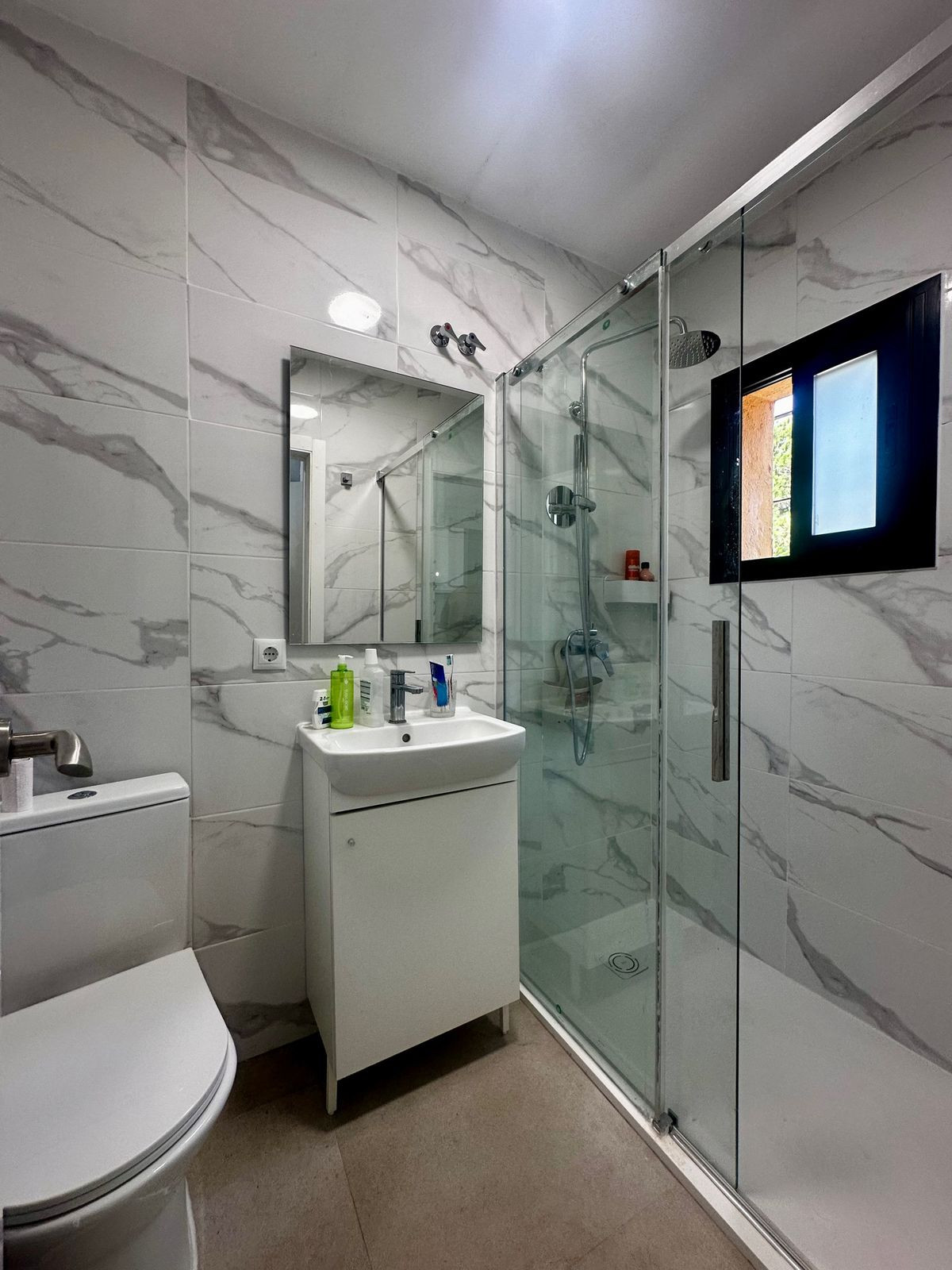 La maison principale est répartie sur deux étages et comprend deux chambres spacieuses et deux salles de bains complètes. Chaque chambre dispose d'une terrasse privative, dont l'une offre une vue imprenable sur la mer, idéale pour se détendre et profiter du soleil de la Costa del Sol.